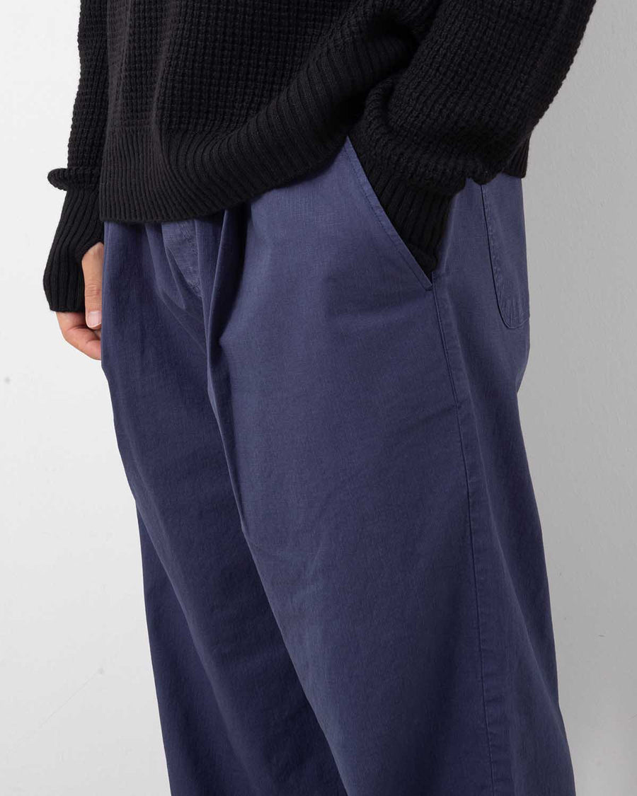 These trousers are made from cotton ripstop with a single pleat, featuring a wide, relaxed straight fit.