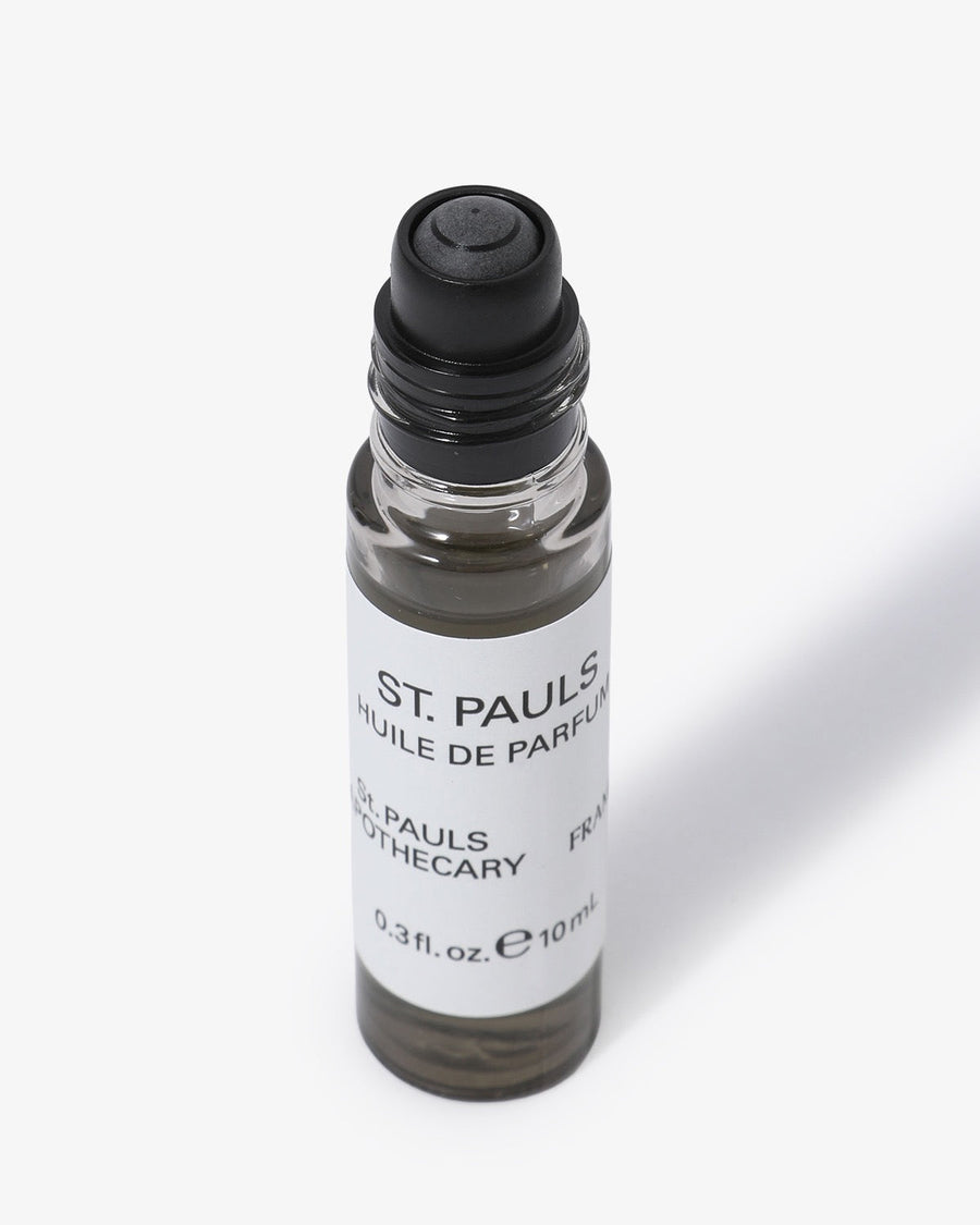 A roll-on oil perfume with jojoba oil, blending lemongrass, cedarwood, and sandalwood, inspired by Copenhagen’s historic St. Pauls Apotek.