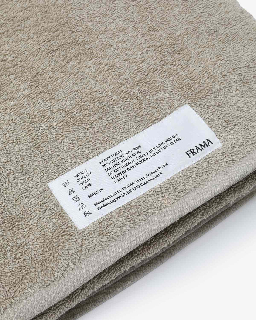 The HEAVY TOWEL BODY, woven from 70% organic cotton and 30% hemp, is soft, thick, and highly absorbent, with a large size perfect for bathroom or beach use.
