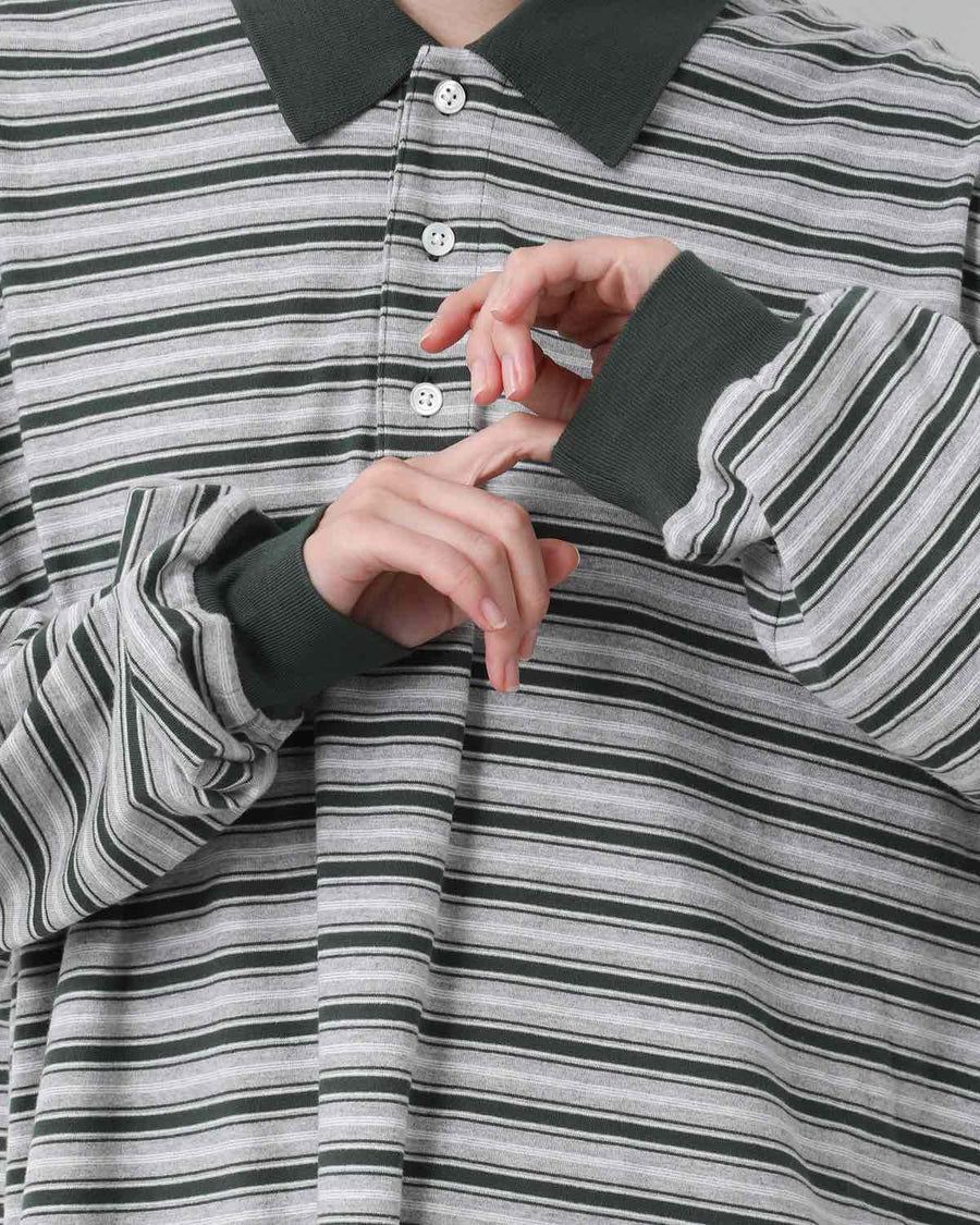 FARAH MULTI STRIPED POLO COLLAR L/S TEE (WOMEN'S)