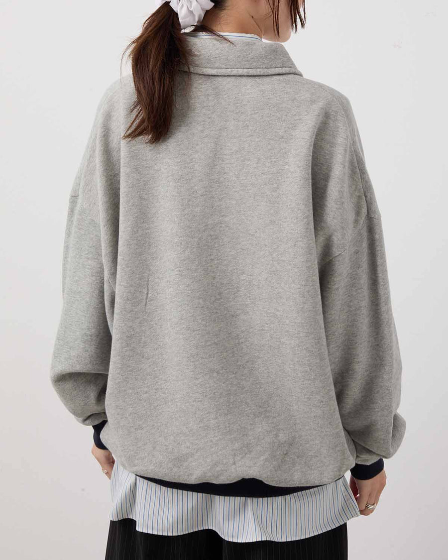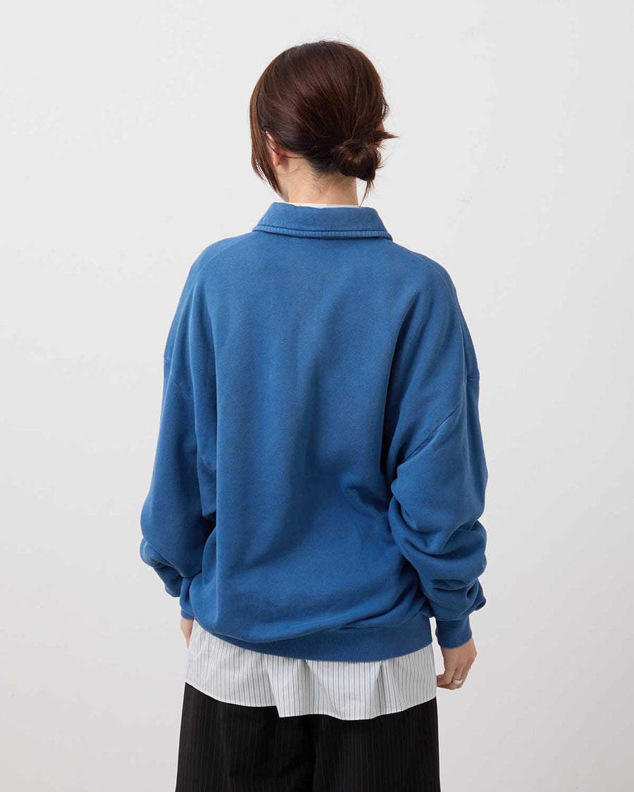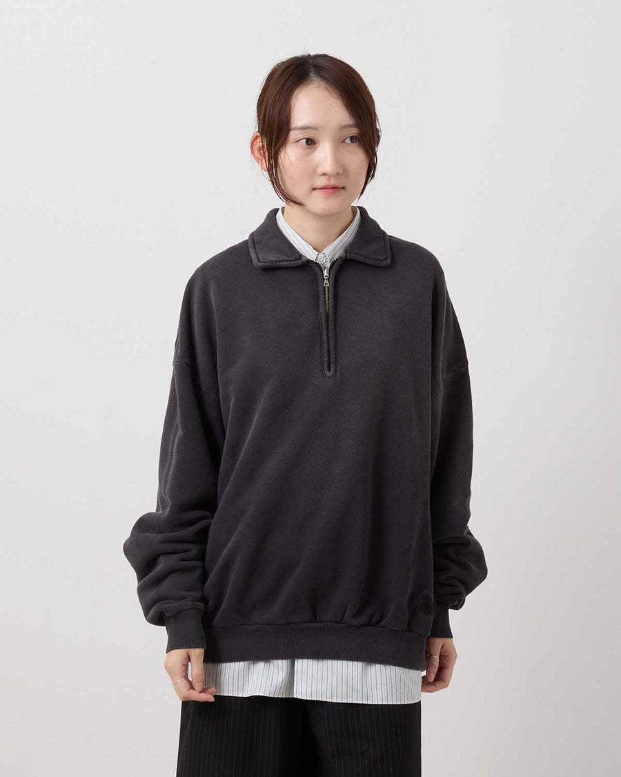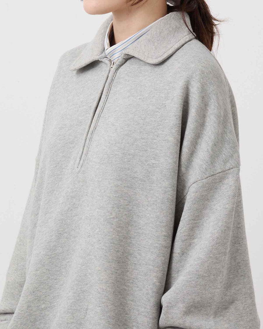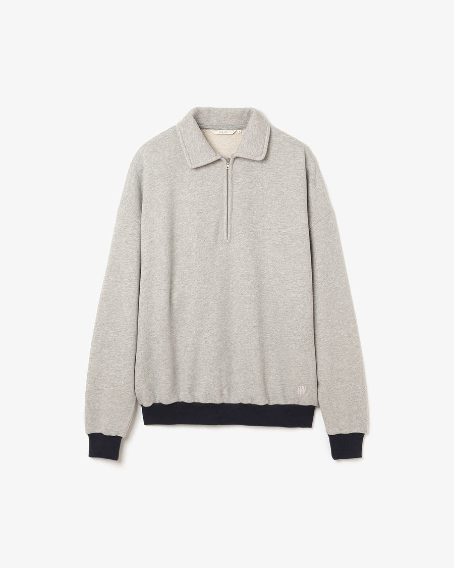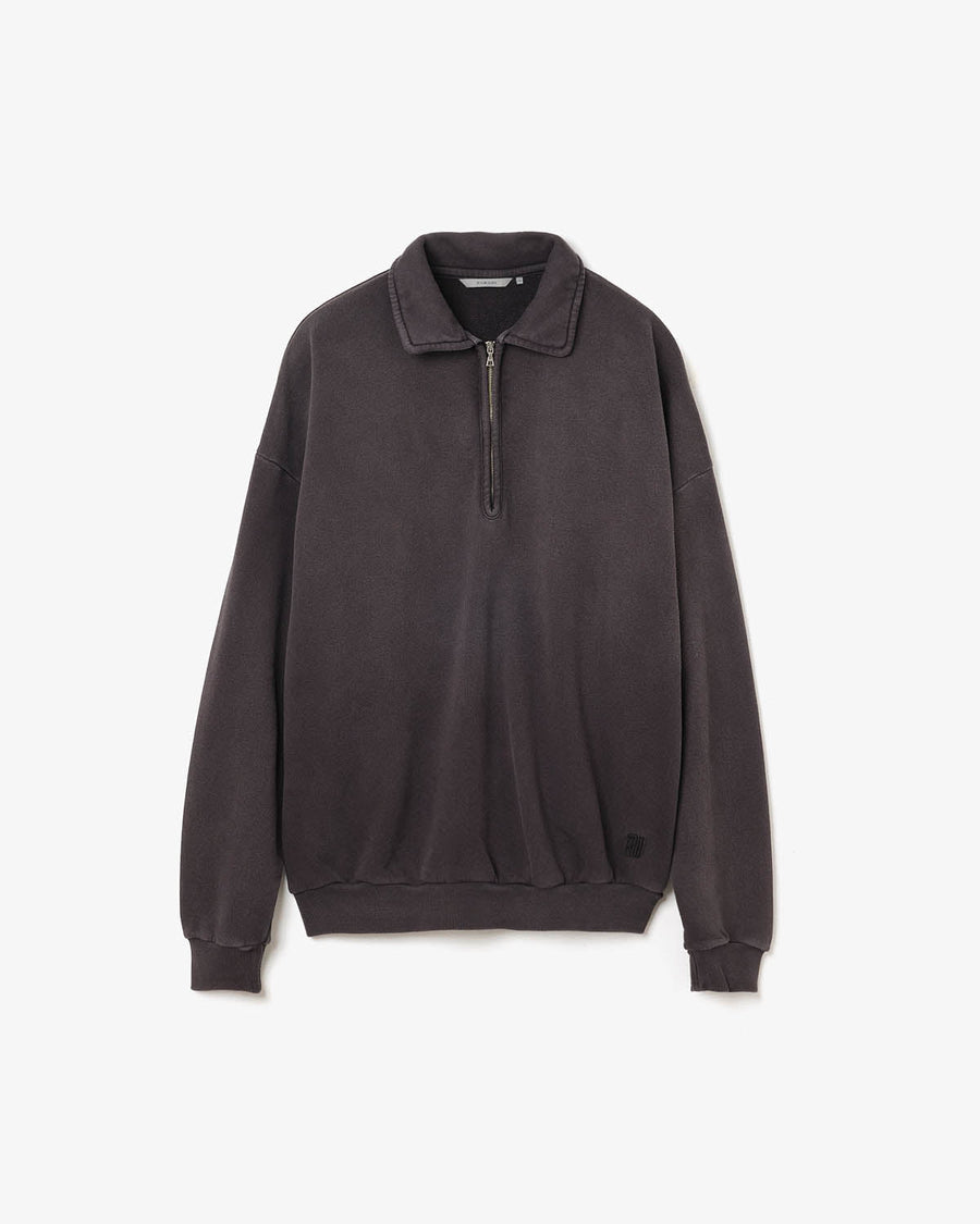 This half-zip sweatshirt incorporates vintage-inspired details and is crafted from an original fleece fabric knitted on a rare Tompkins machine. The looped interior is brushed to create a soft, lofty texture that offers exceptional warmth and volume.