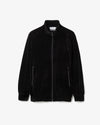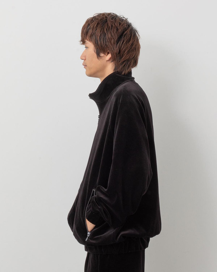 A modern track jacket with a relaxed fit, made from high-density velour for a sleek look.