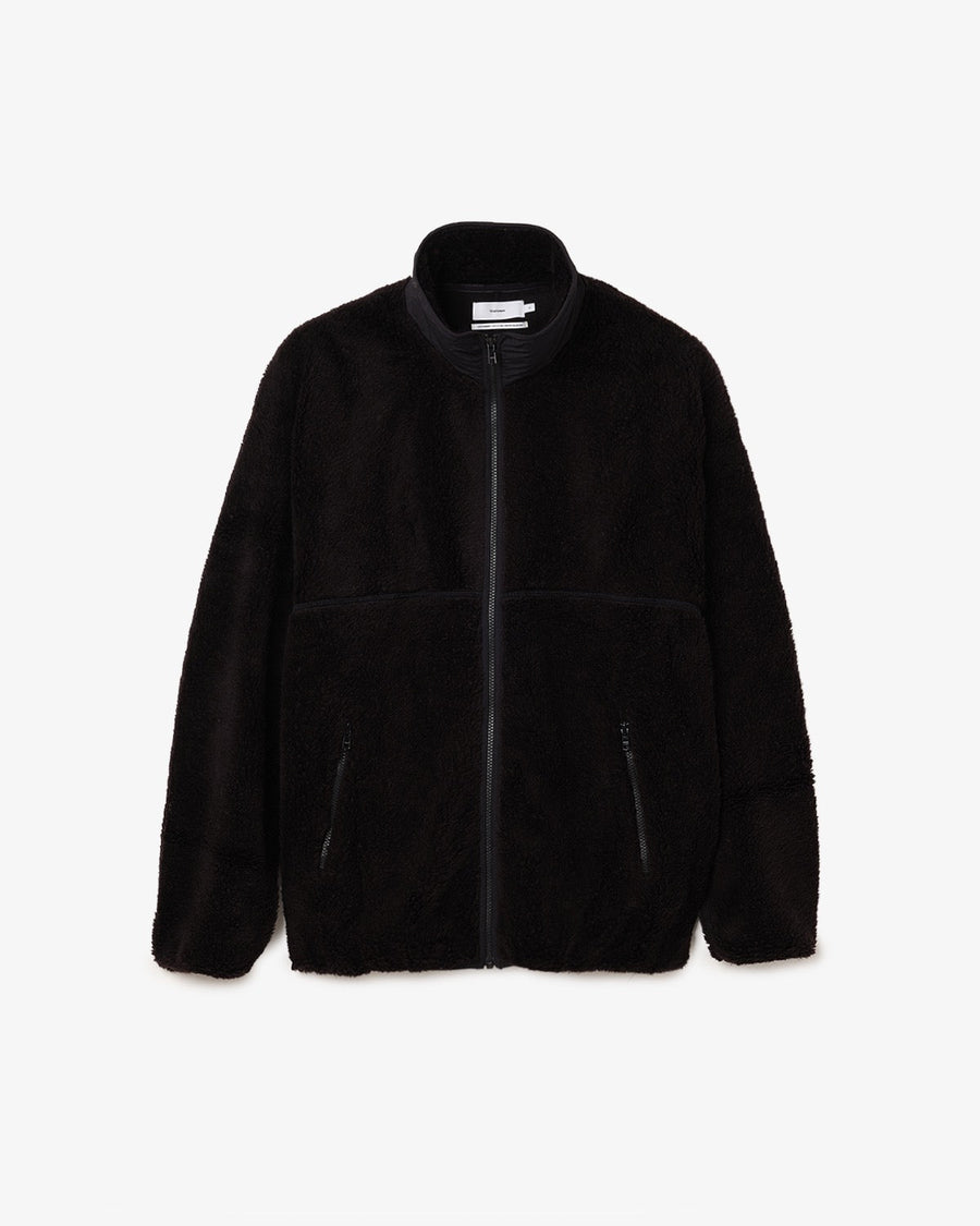 Zip-up bomber in luxurious wool boa with soft, resilient texture and a relaxed, voluminous silhouette.