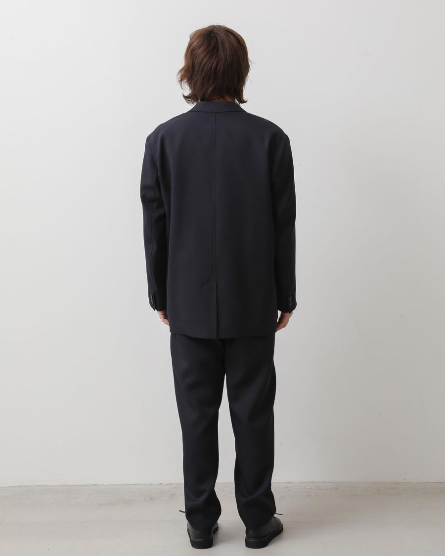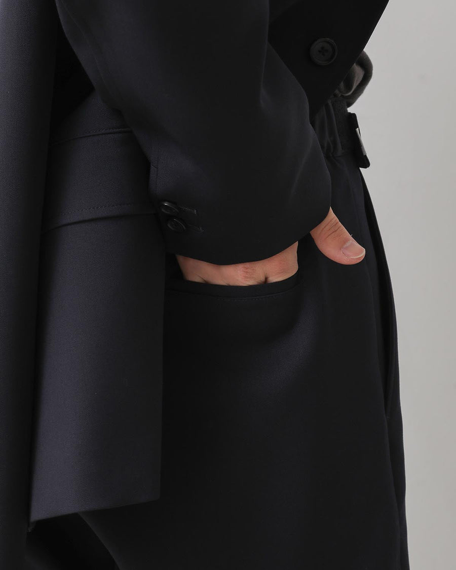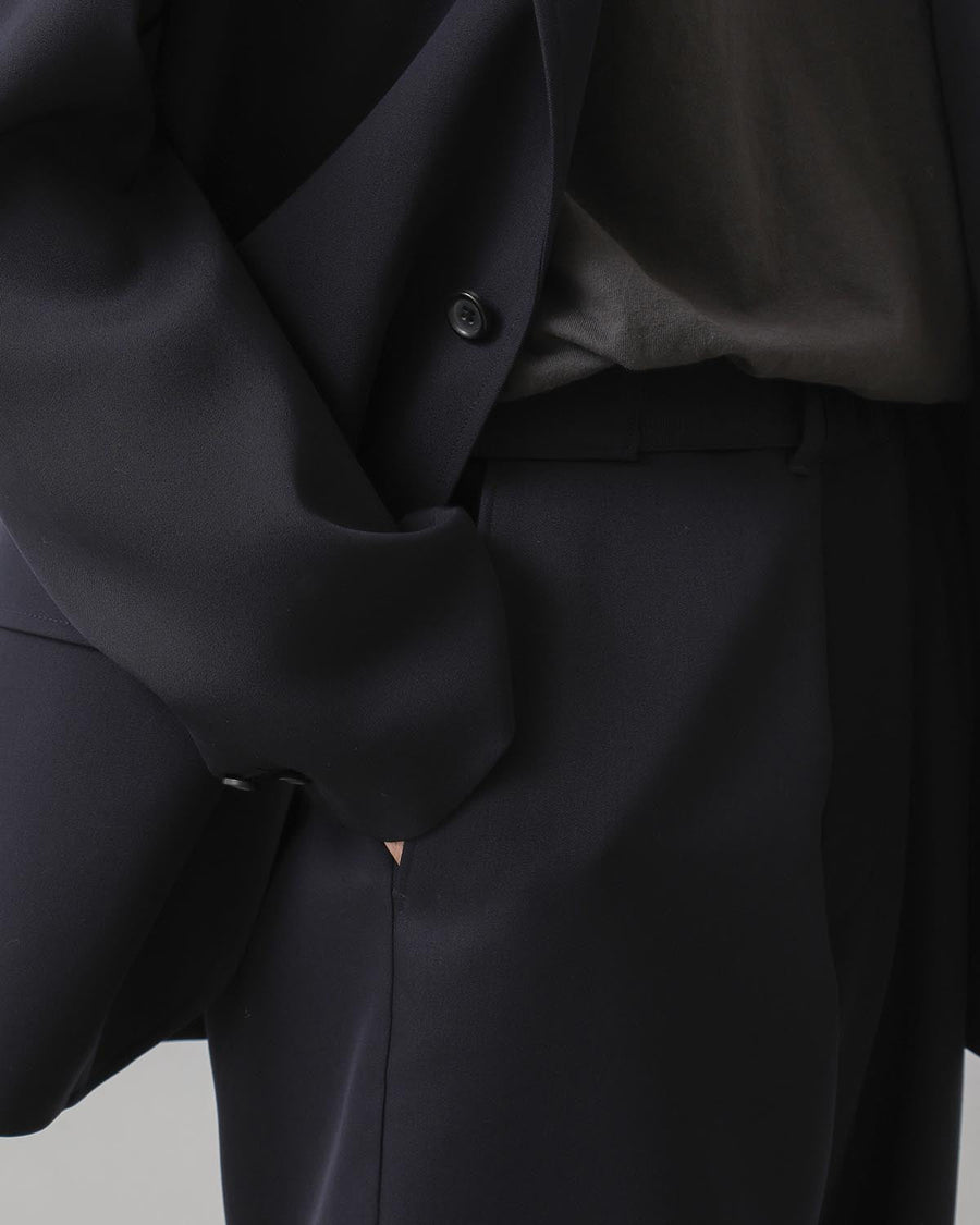 Easy trousers in high-density wool gabardine with a glossy texture, resized this season with adjusted hem width, based on French chef pants.