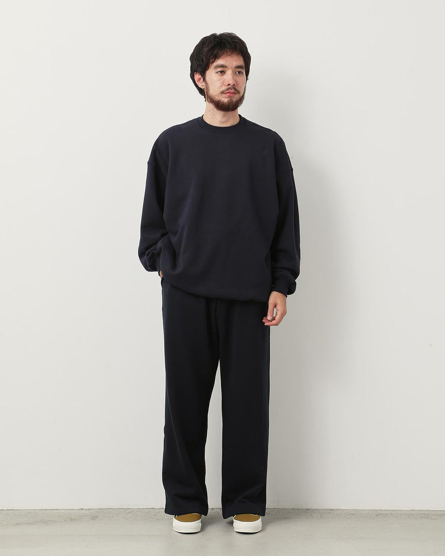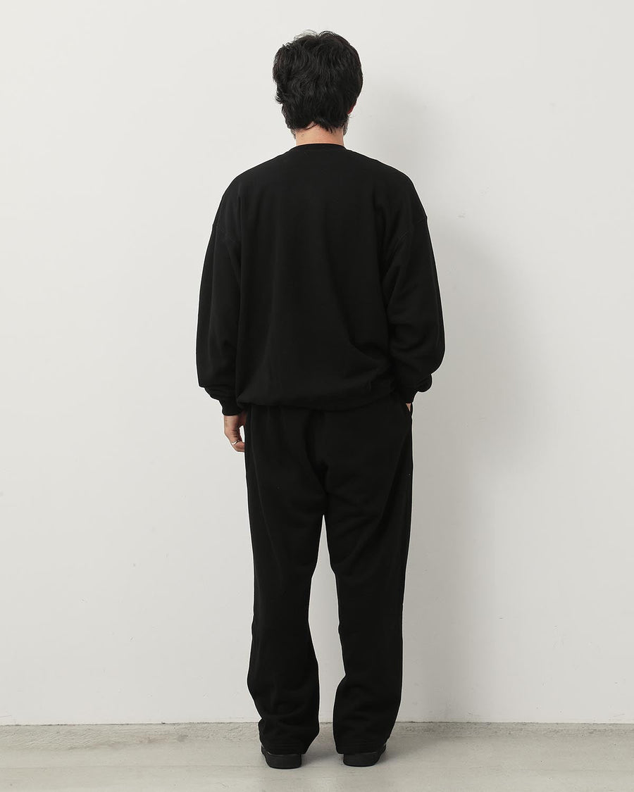 These sweatpants feature original loopback fabric from a vintage Azuma knitting machine, offering a smooth, structured, and durable finish.