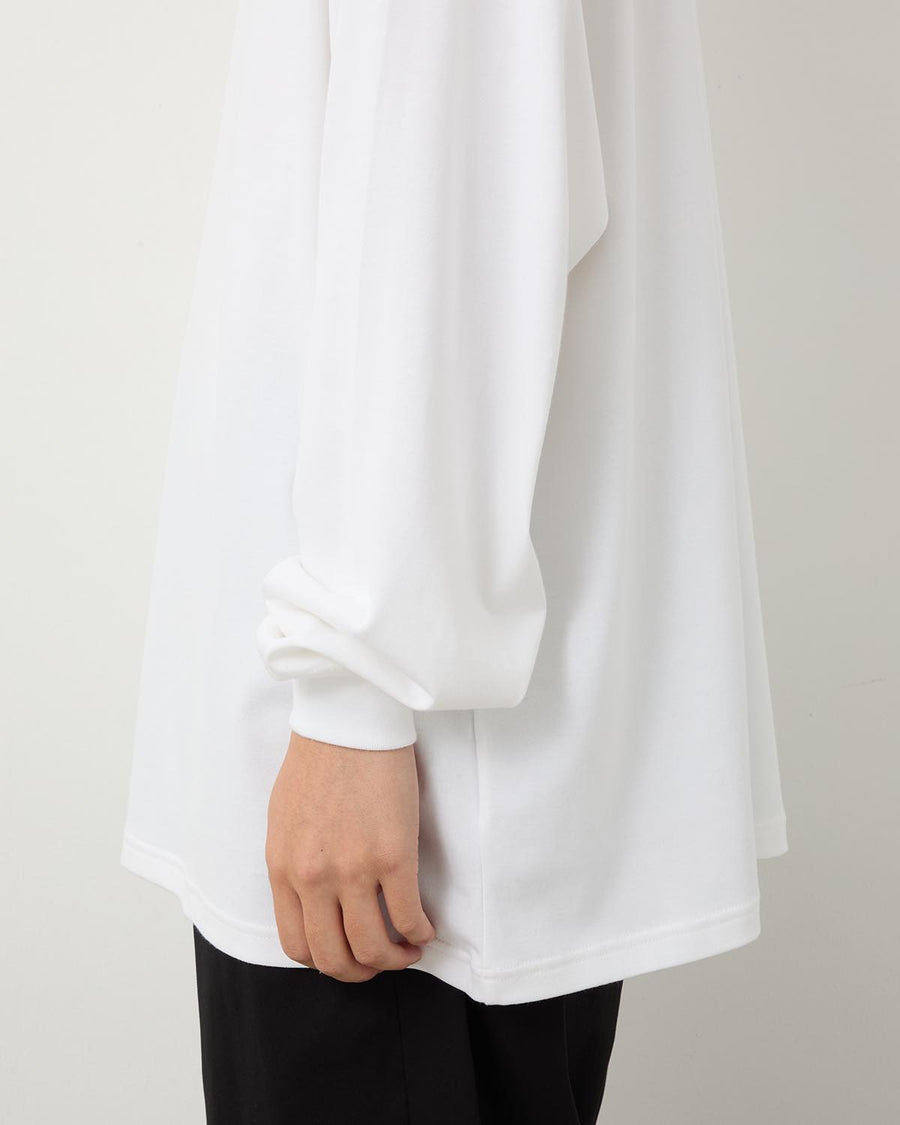 A long-sleeve oversized T-shirt made from triple-ply fine yarn, featuring a smooth, soft jersey with natural sheen and a refined, substantial finish.