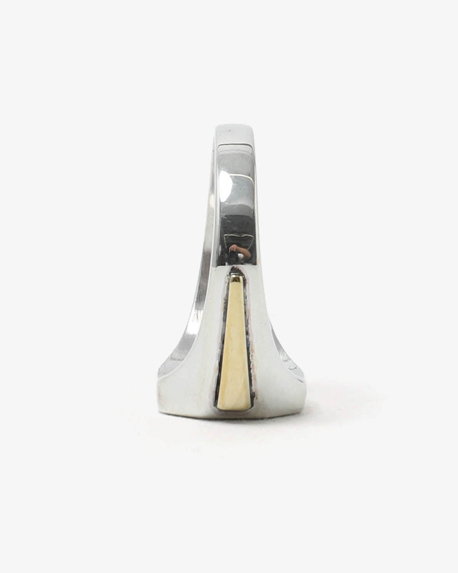 Signet-inspired ring in 925 sterling silver with matte brass gold-tone side plates.