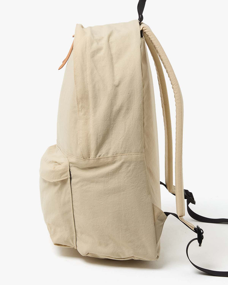This 22L backpack, crafted from nylon dyed with natural pigments from onion skins, features a soft, cotton-like feel that develops character over time. It includes a cushioned laptop pocket and tumbler pocket for practical everyday use.
