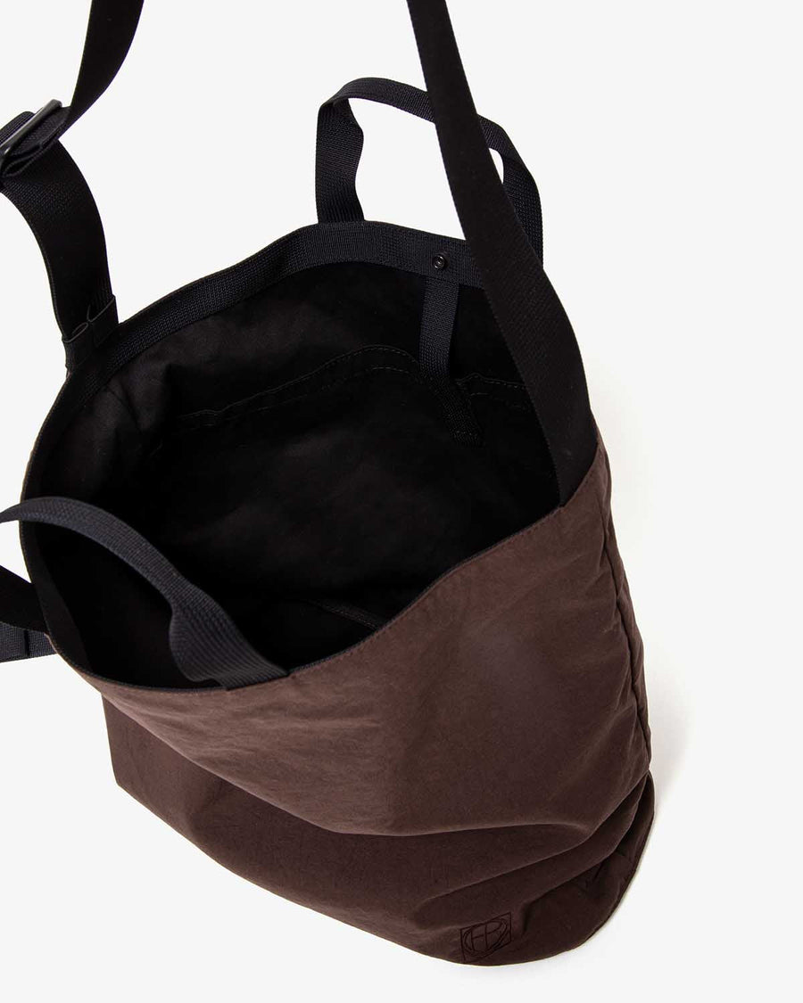 This 2-way tote, dyed with natural onion-skin pigments, combines a soft, cotton-like feel with lightweight structure, fitting A4 items and offering hand or shoulder carry.