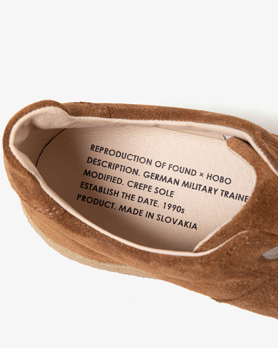 This collaboration between REPRODUCTION OF FOUND and hobo features 1980s German military training shoes with a natural crepe sole, handcrafted in factories that produced military footwear from the 1950s to the 1990s.