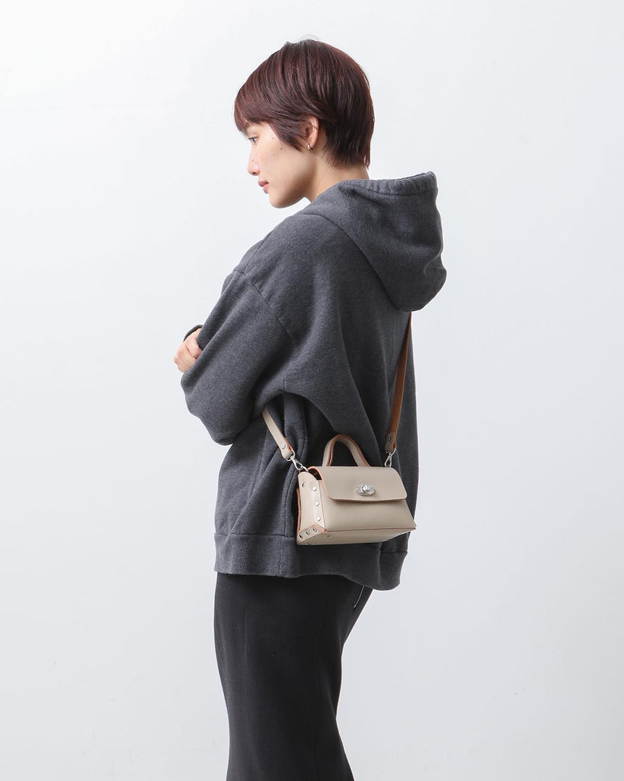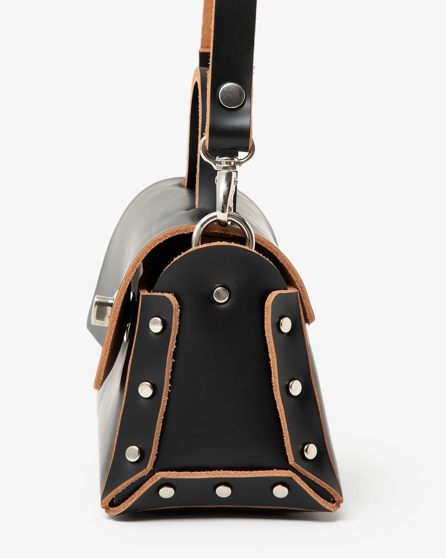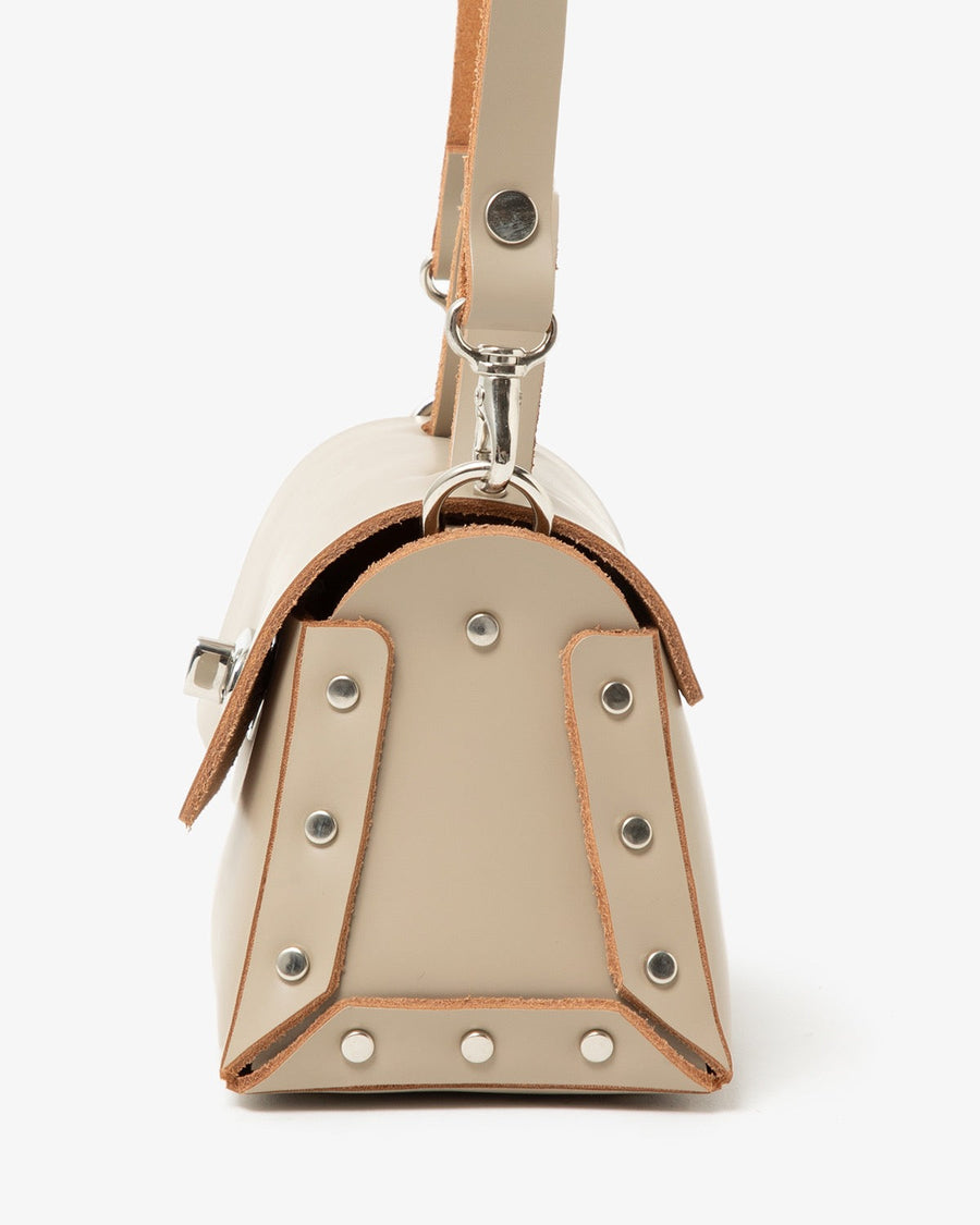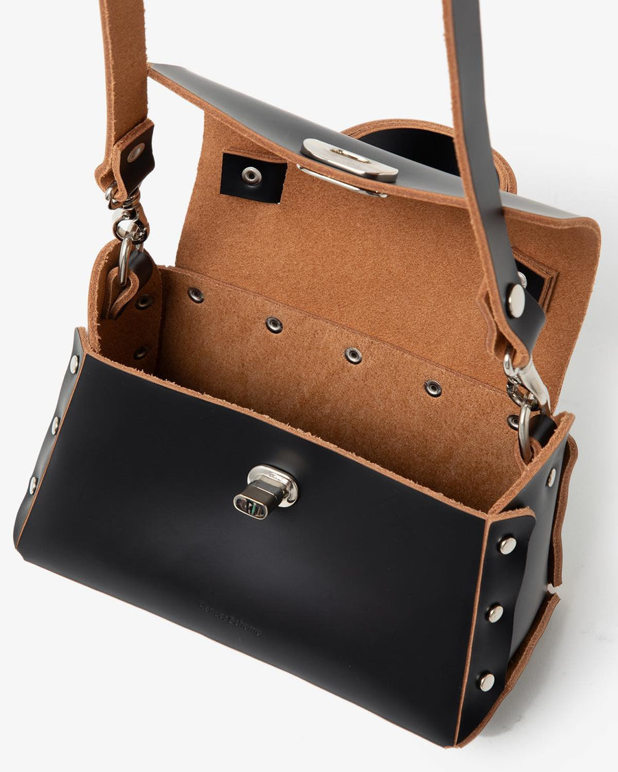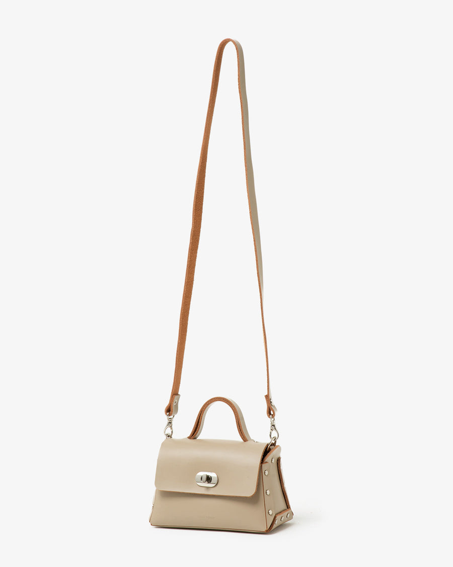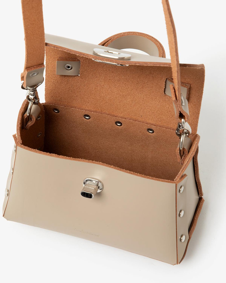 This mini-sized handbag is crafted from luxurious, smooth glass leather.