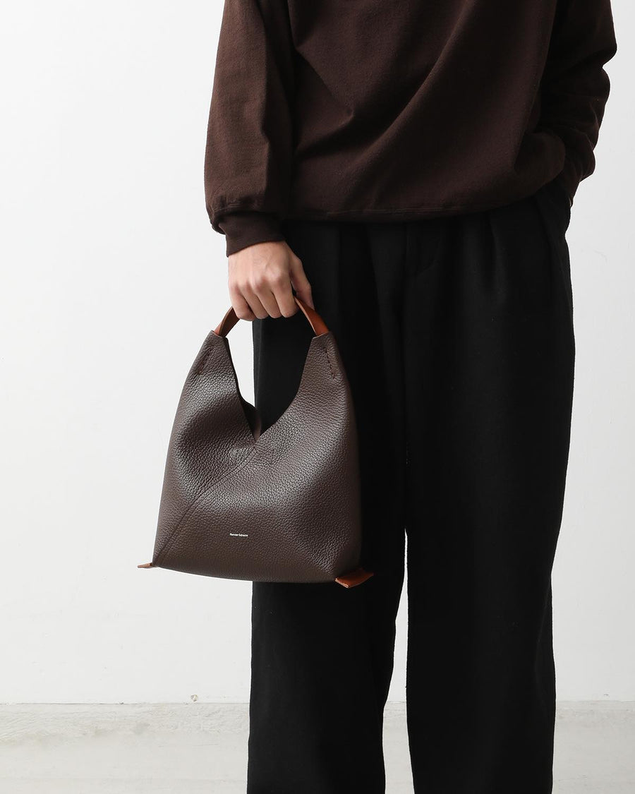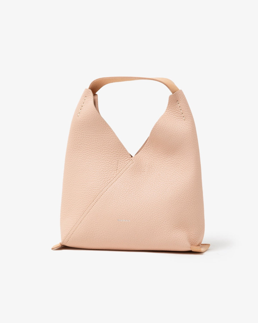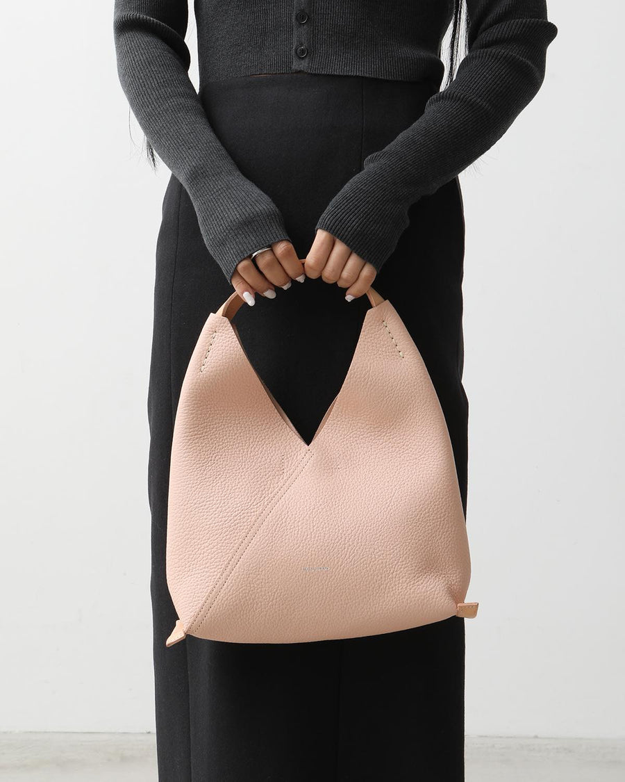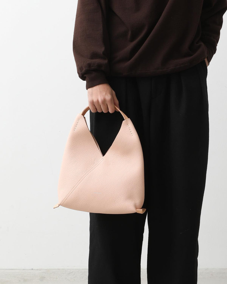 The "TRIANGLE BAG" from the "SOFT SHRINK SERIES" features soft, textured shrink leather with a fine grain.
