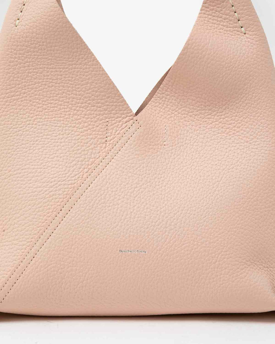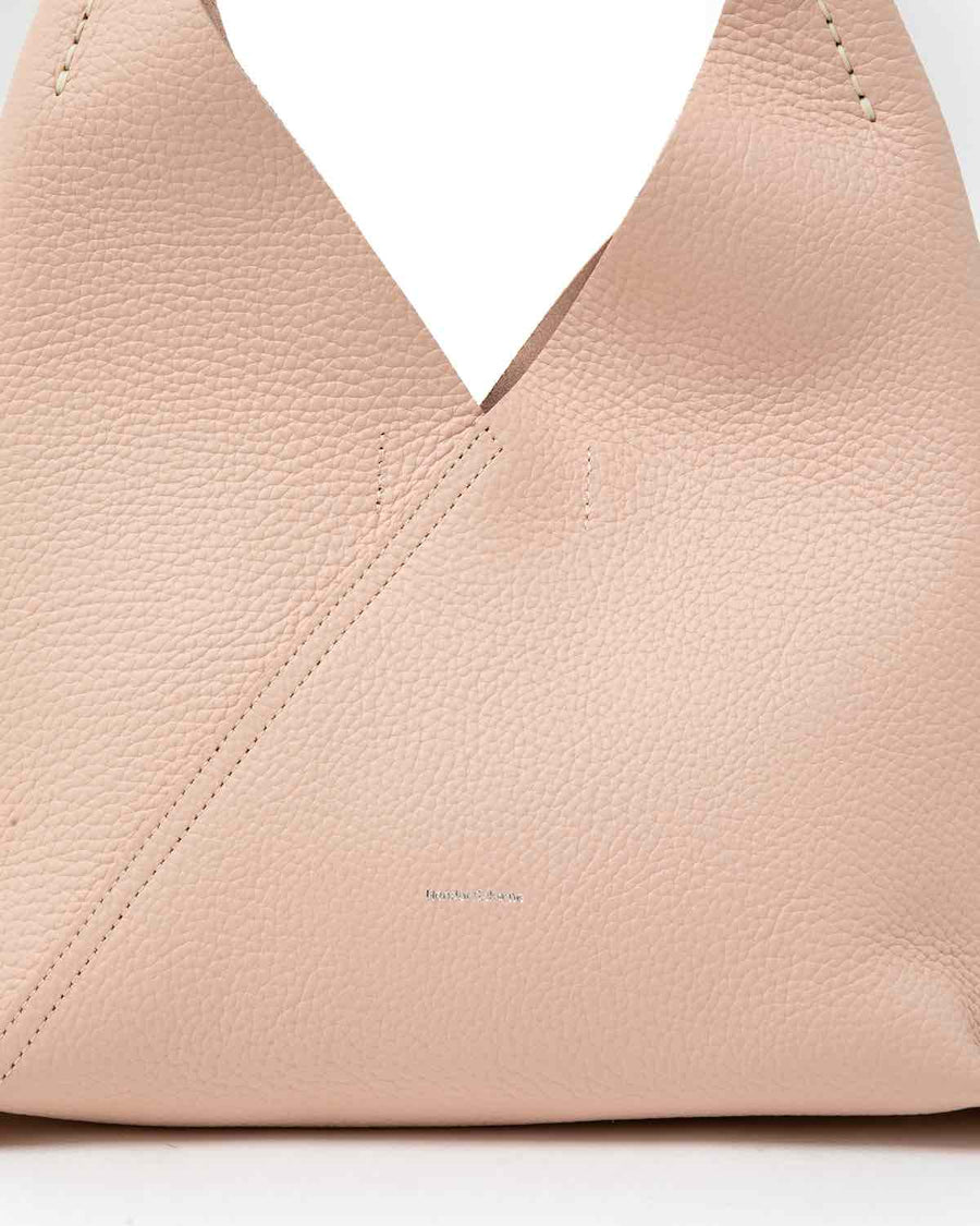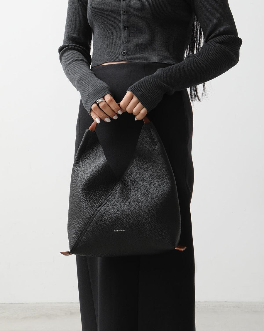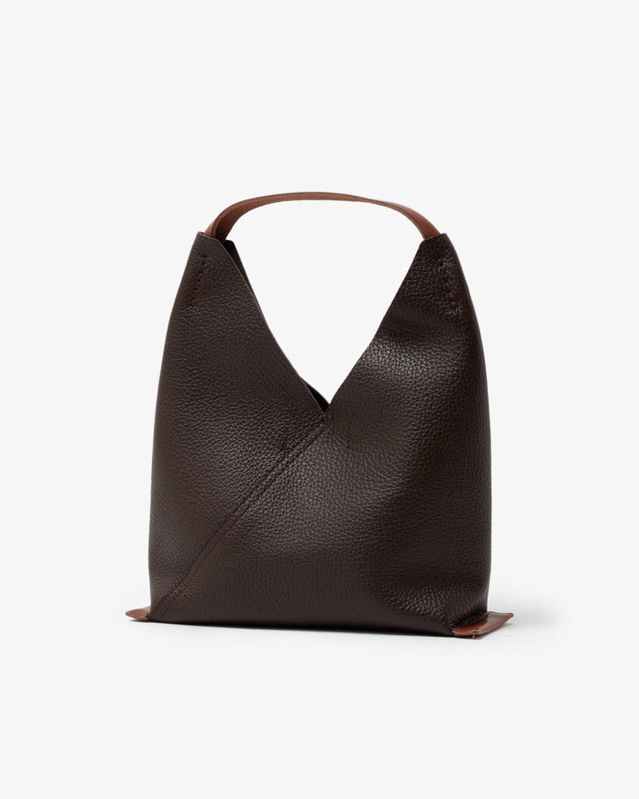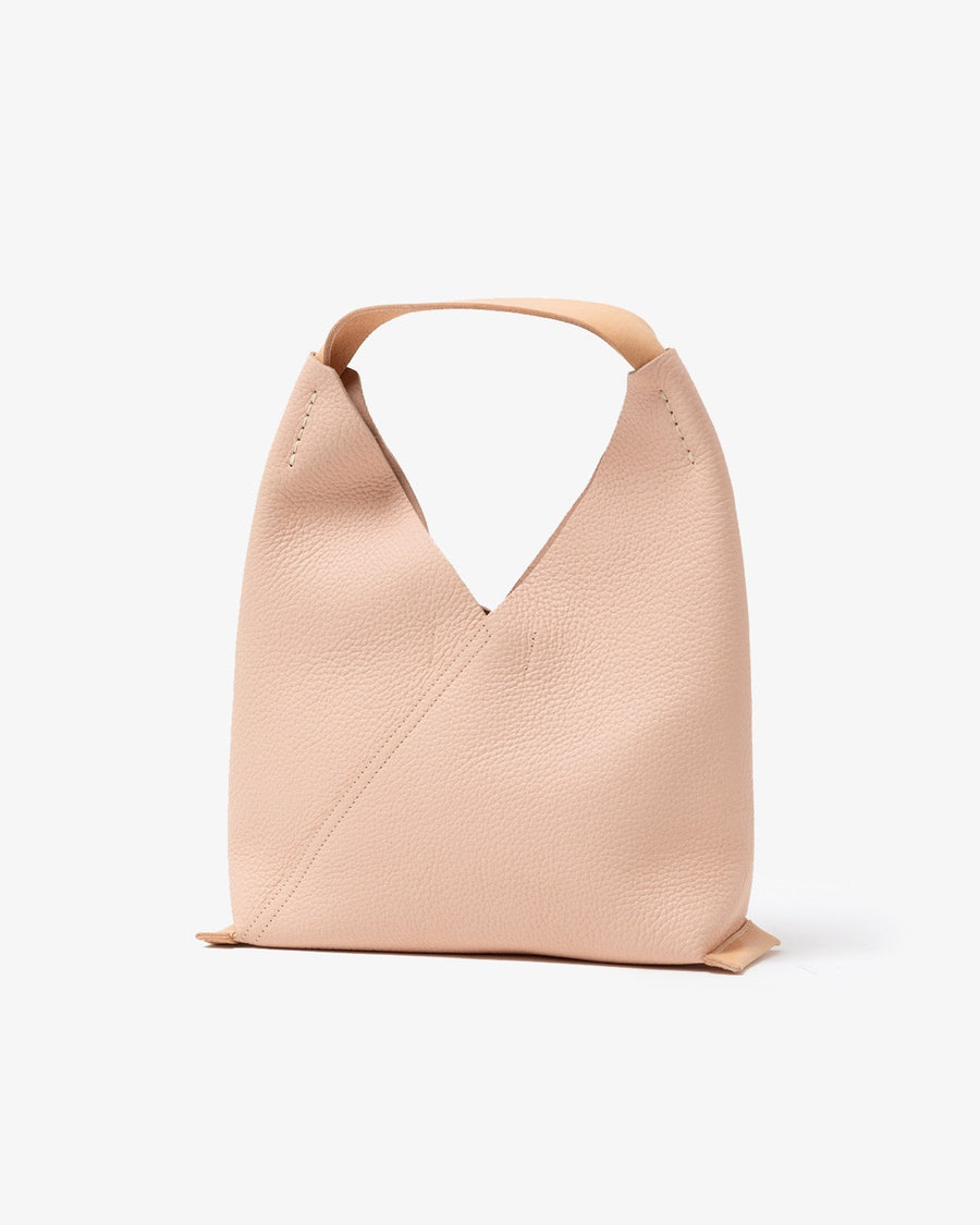 The "TRIANGLE BAG" from the "SOFT SHRINK SERIES" features soft, textured shrink leather with a fine grain.