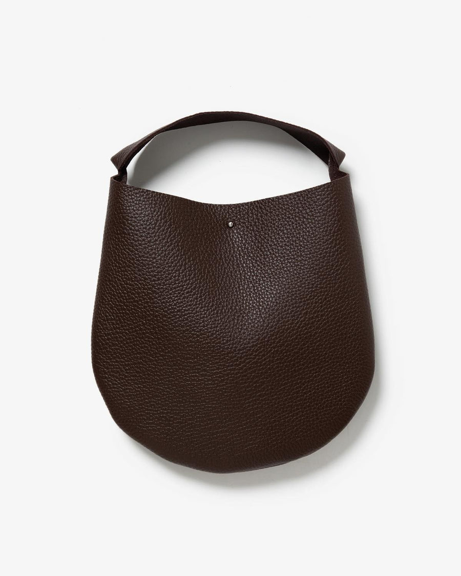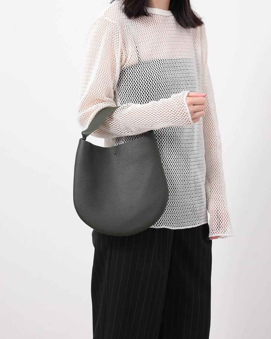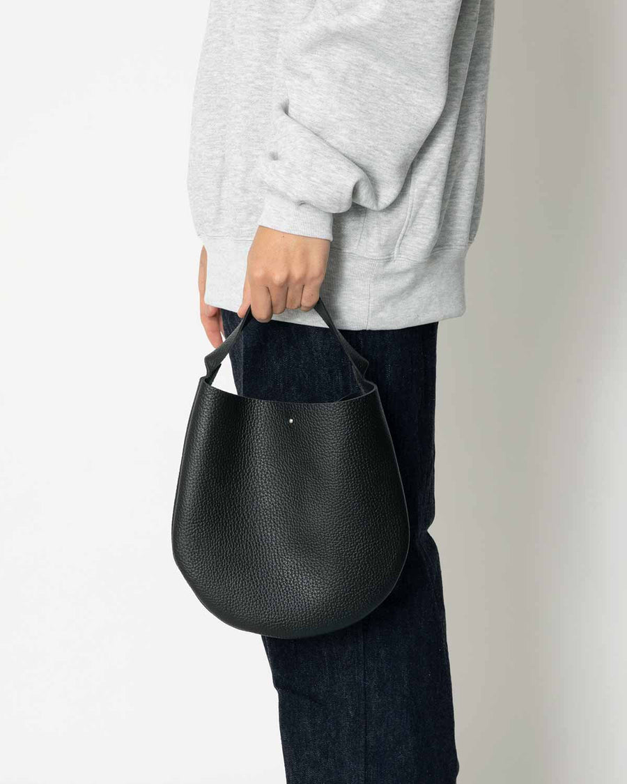 The ONE PIECE BAG BIG from the SOFT SHRINK SERIES is made from one piece of soft, textured cow leather with a cute rounded shape.