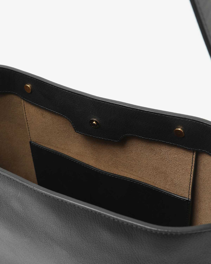 The GRACE SHOULDER BAG features thick embossed leather with a soft touch and elegant look. Its bonded lining creates a clean, structured finish.