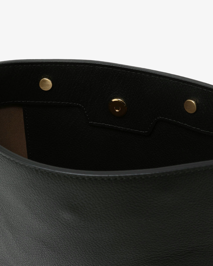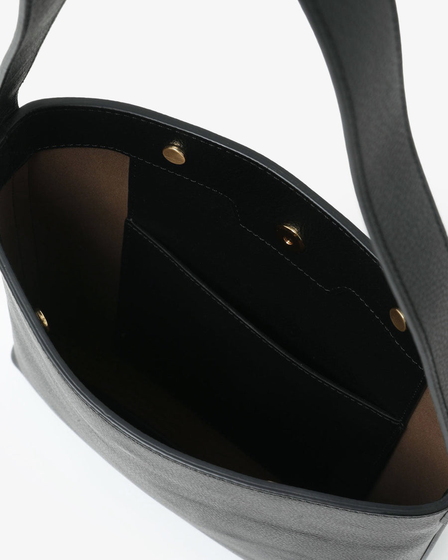 厚みのあるステアレザーにエンボス加工を施し、柔らかな肌触りと上品な佇まいを兼ね備えたショルダーバッグです。
