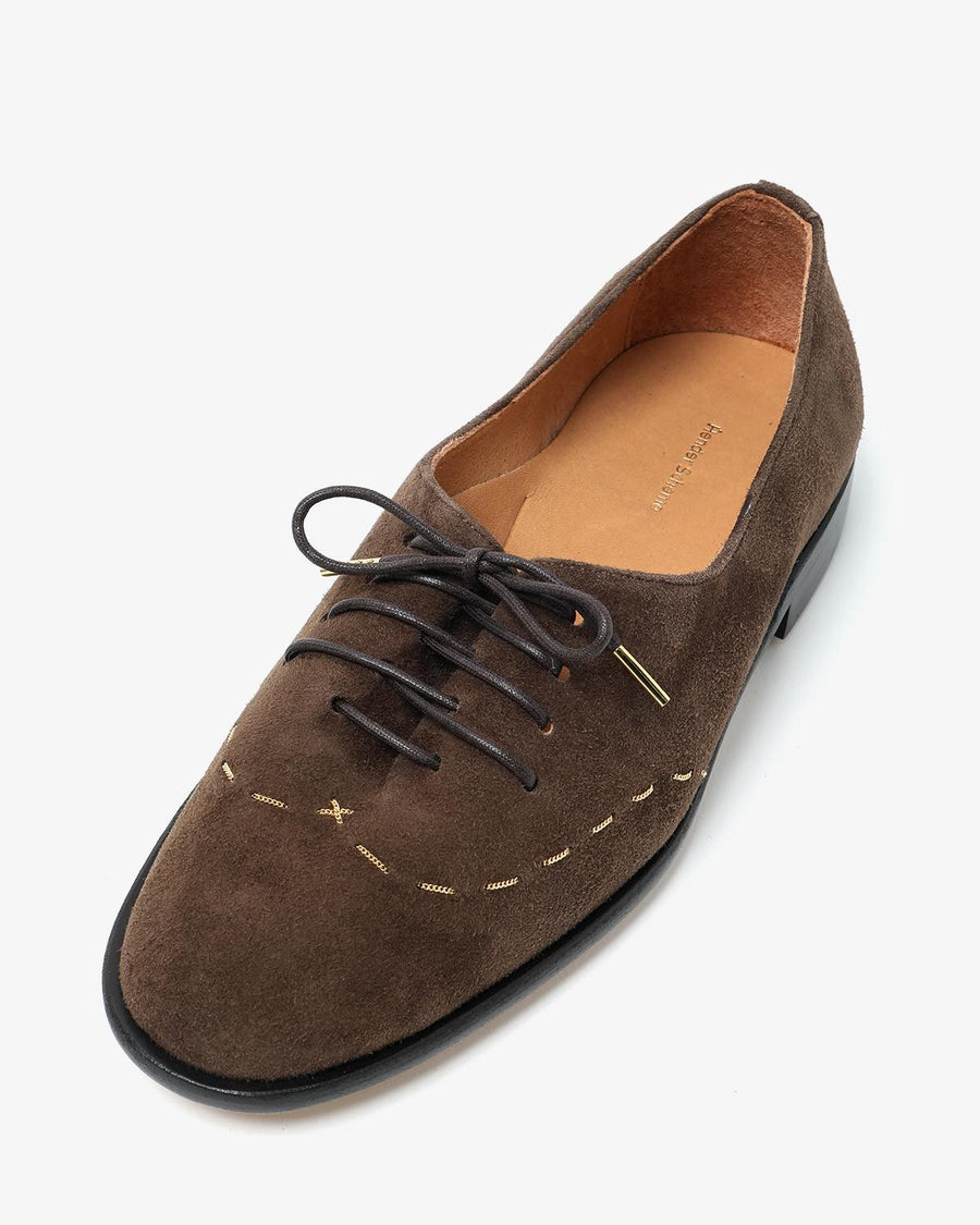 The "CHAIN TIP" features a striking wingtip design in fine chain detailing and an upper designed to be cinched tightly with laces for a unique fit.