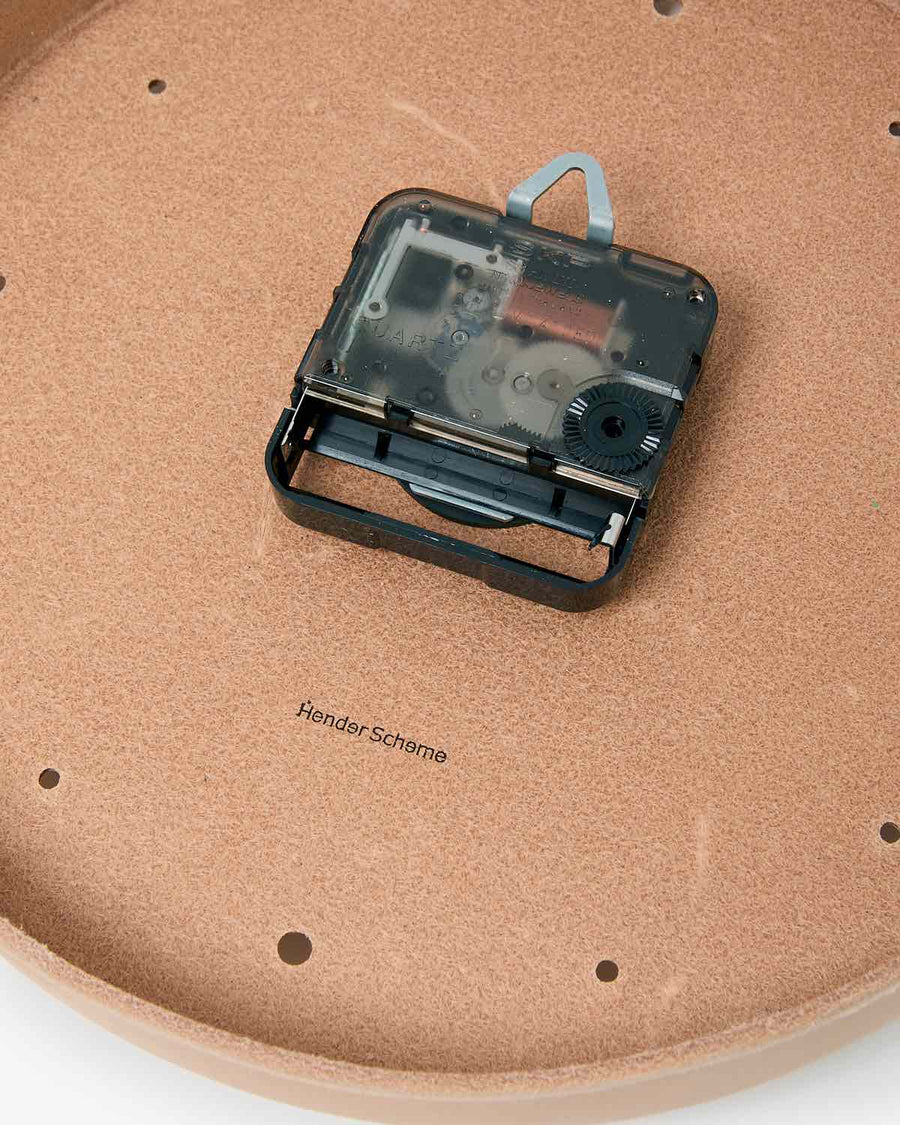 From the VEGETABLE TANNING SERIES, the CLOCK is shaped from vegetable-tanned leather, with time measured by its aging process and a stamp on the back.