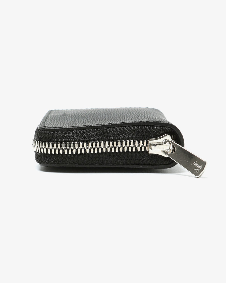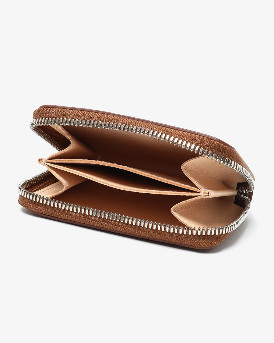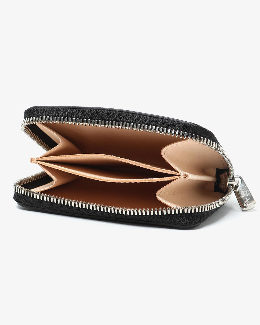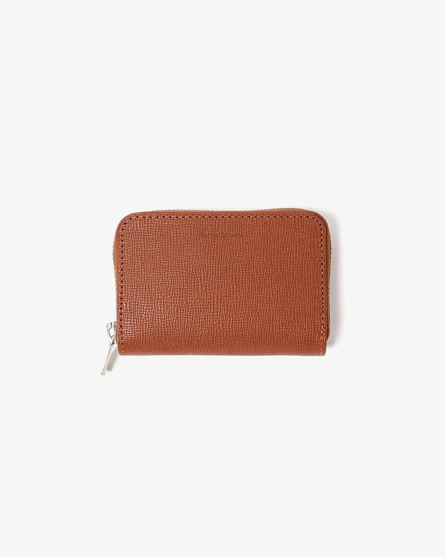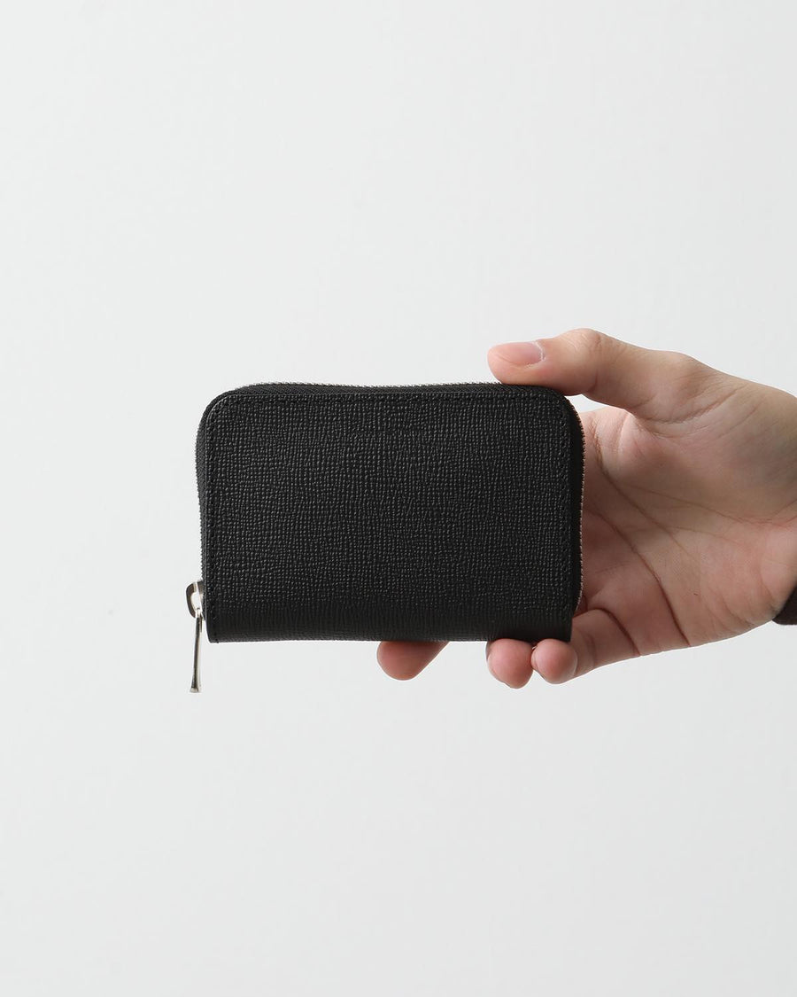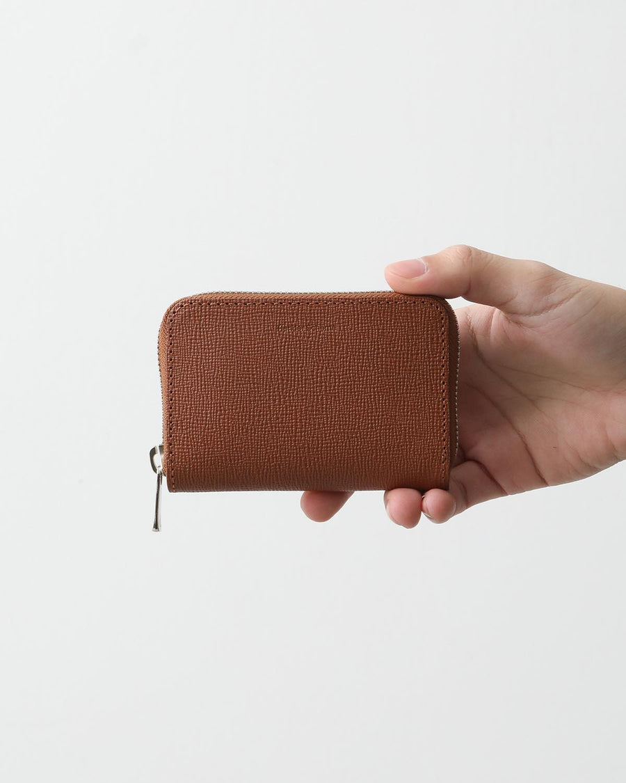 The "ROUND ZIP CASE" from the new "SAFFIANO SERIES" is made of vegetable-tanned embossed leather from Italy's Il Ponte, featuring a minimalist design perfect for cards and coins.