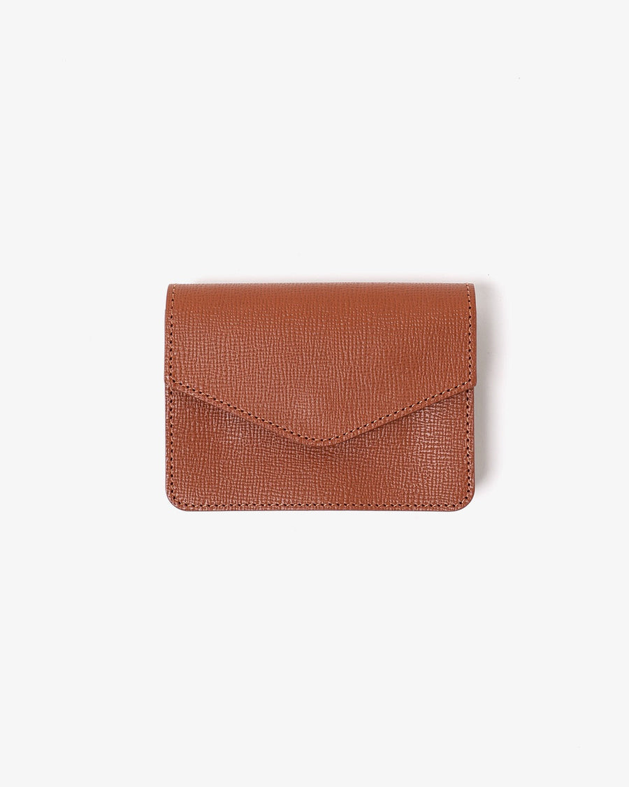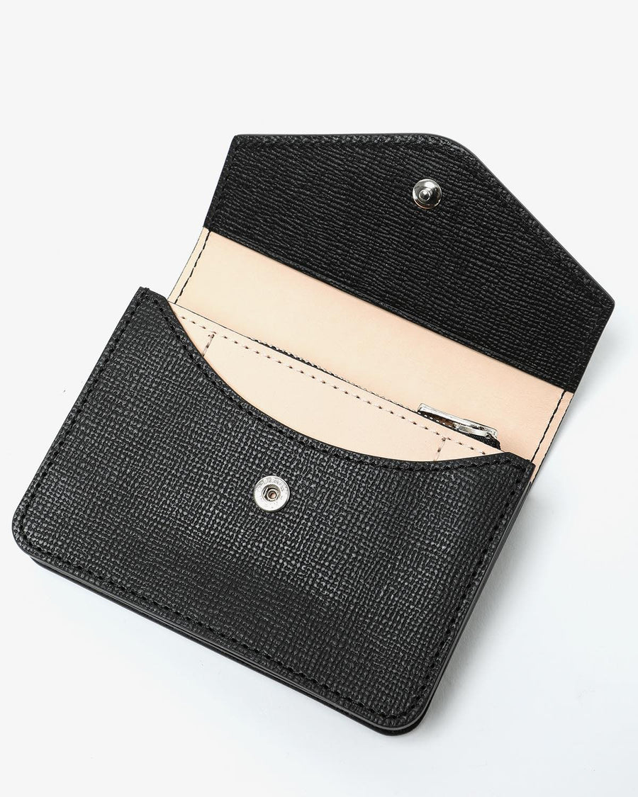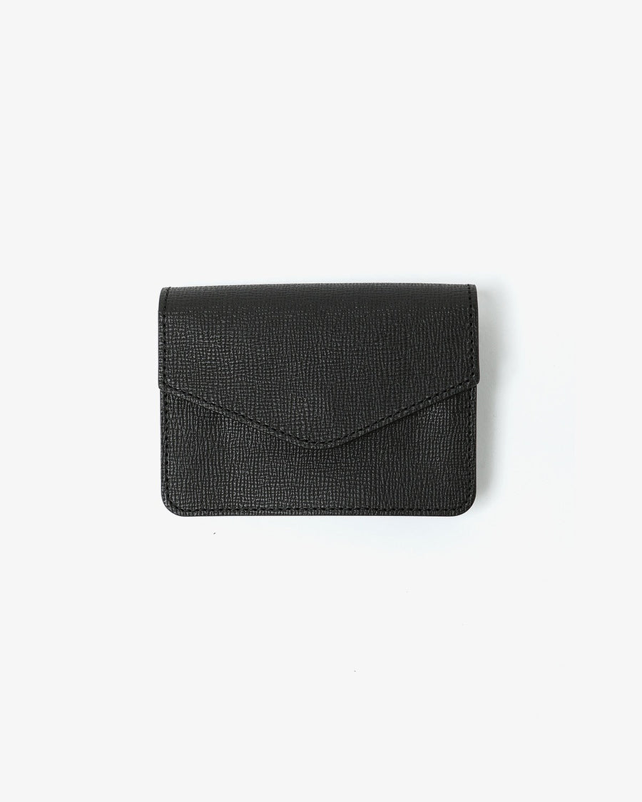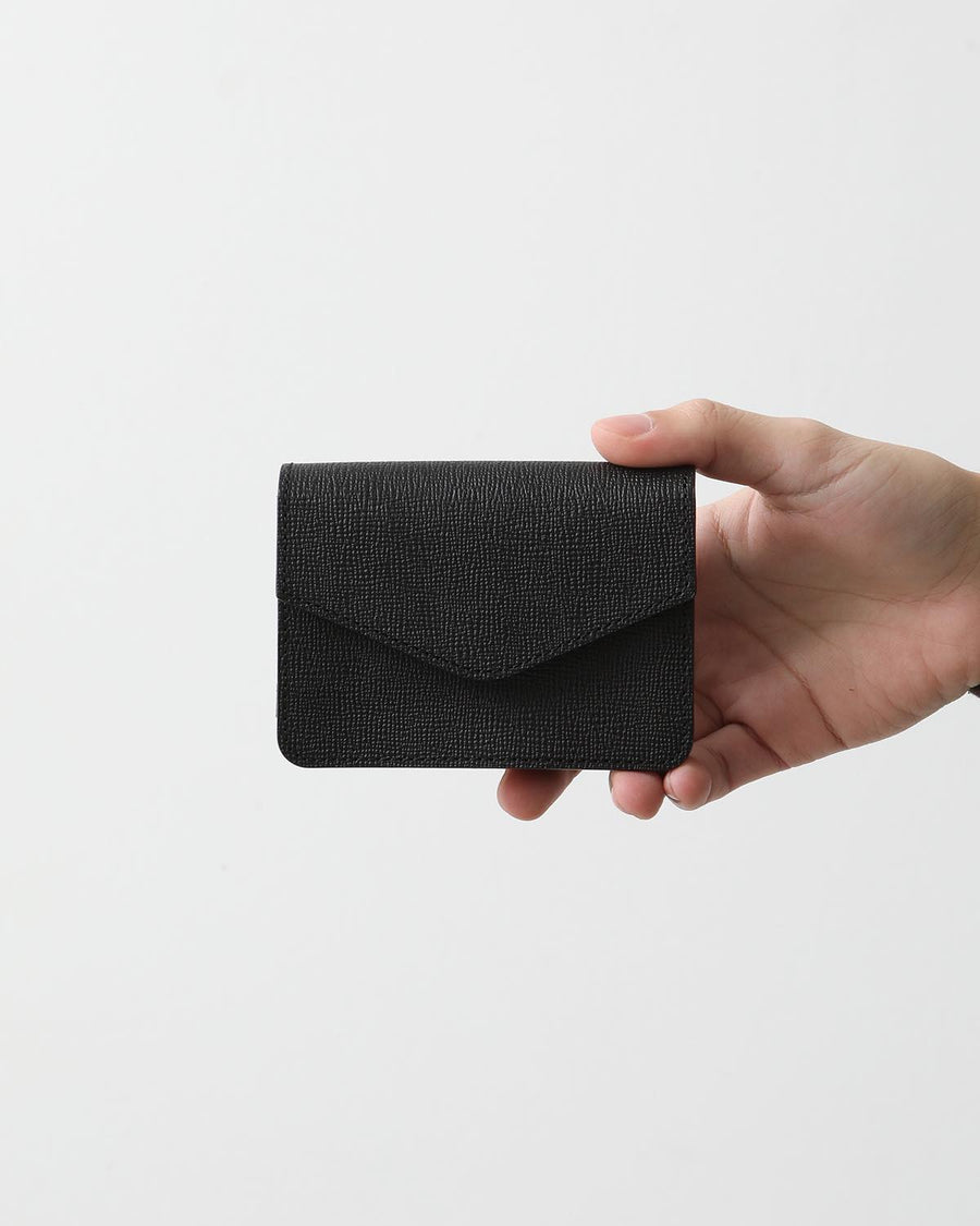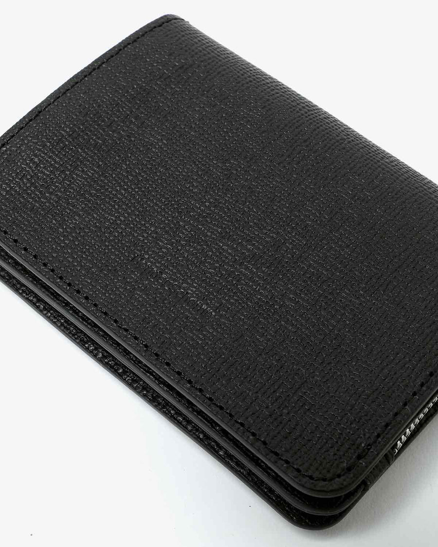 The "FLAP BILLFOLD" from the "SAFFIANO SERIES" features embossed leather, an envelope design with a coin pocket divider, and a flap closure.