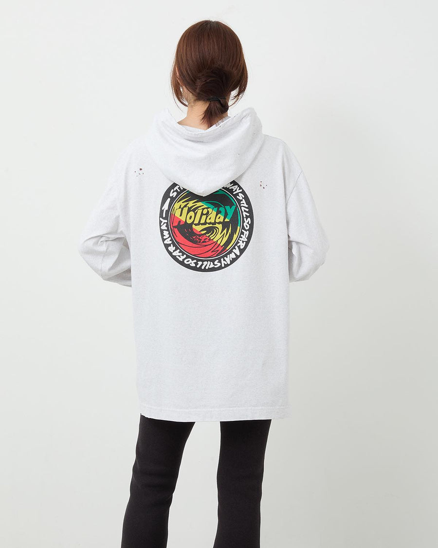HOLIDAY SUPER FINE DRY DAMAGE L/S HOODIE(RASTA CIRCLE)