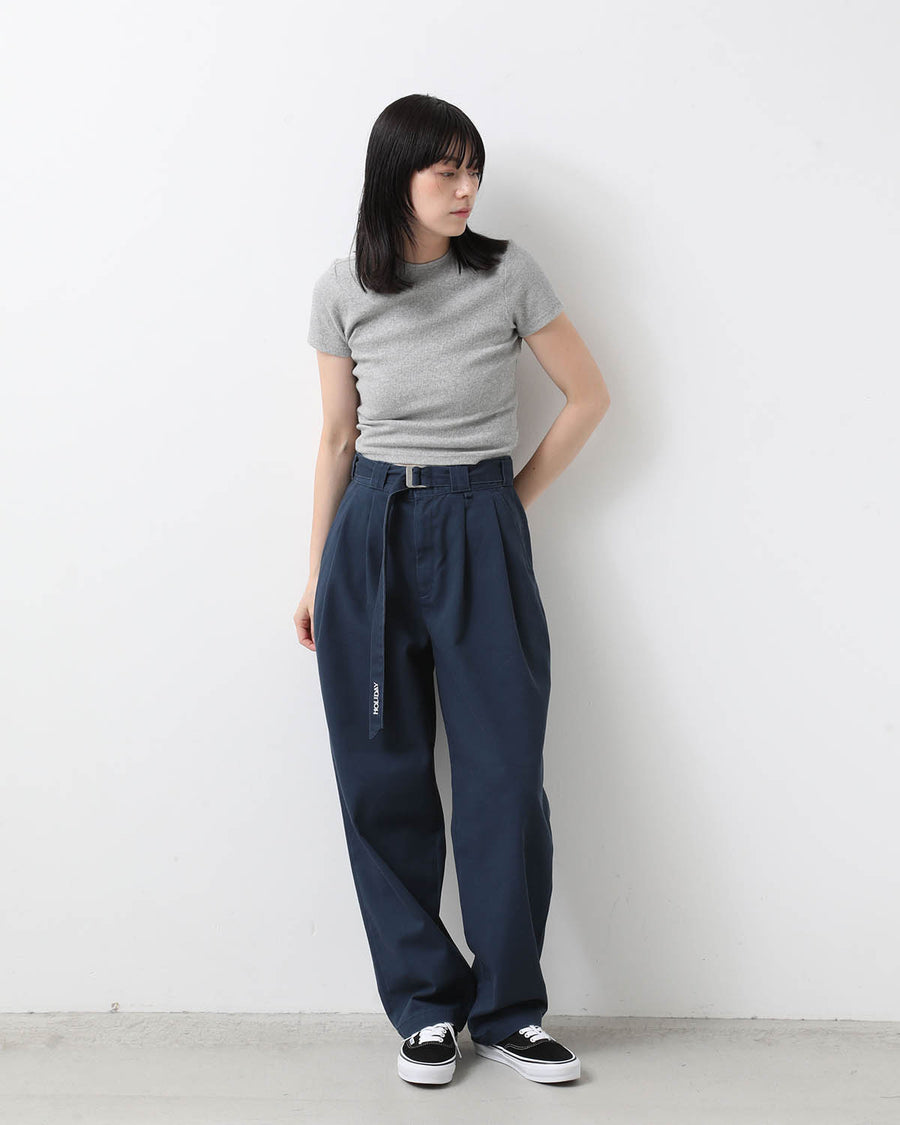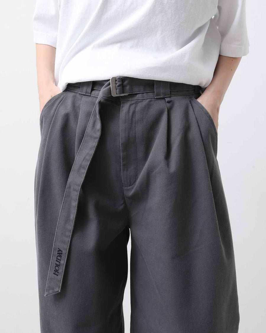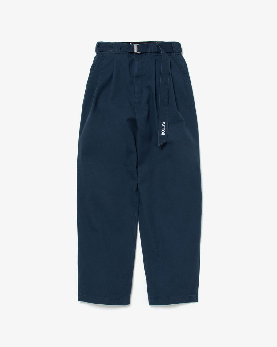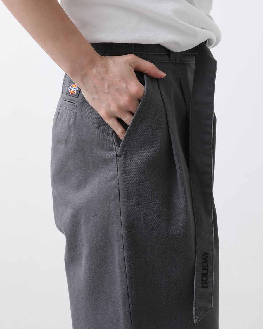 A classic Dickies collaboration from the HOLIDAY SUMMER COLLECTION, these washed two-tuck trousers feature dry-textured TC twill and a matching belt with a HOLIDAY original buckle.