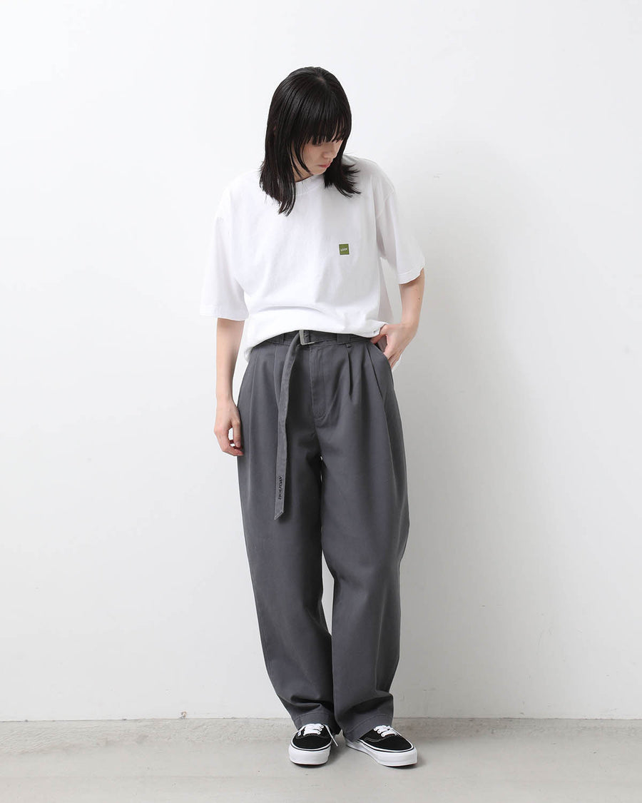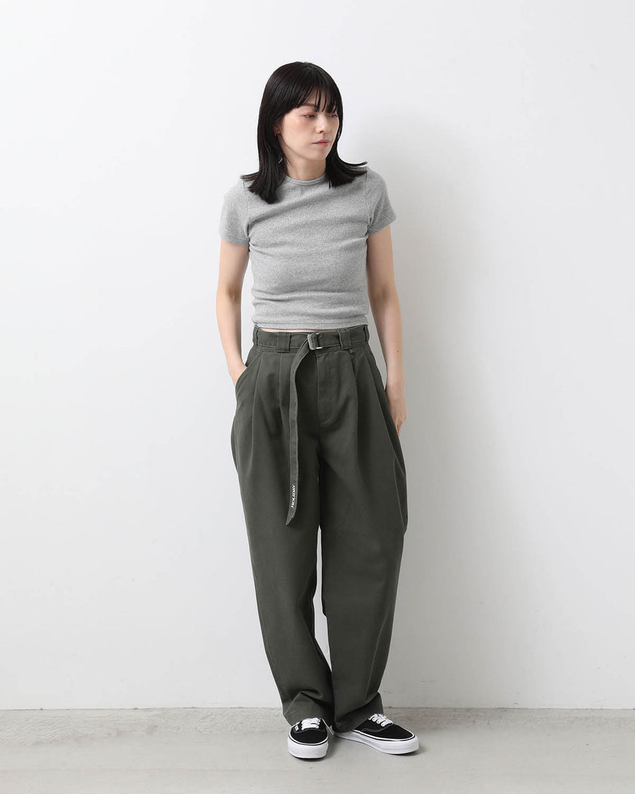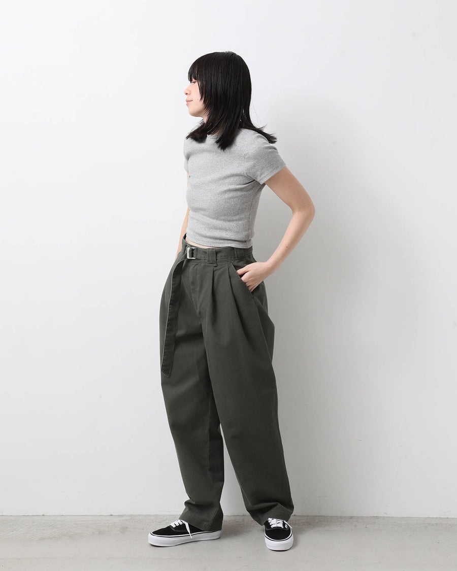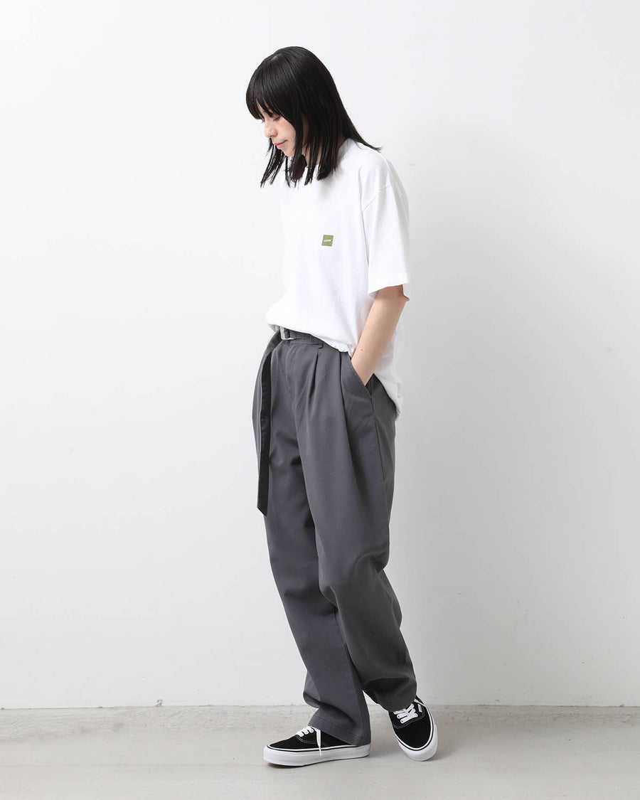 A classic Dickies collaboration from the HOLIDAY SUMMER COLLECTION, these washed two-tuck trousers feature dry-textured TC twill and a matching belt with a HOLIDAY original buckle.