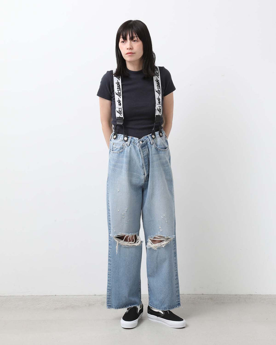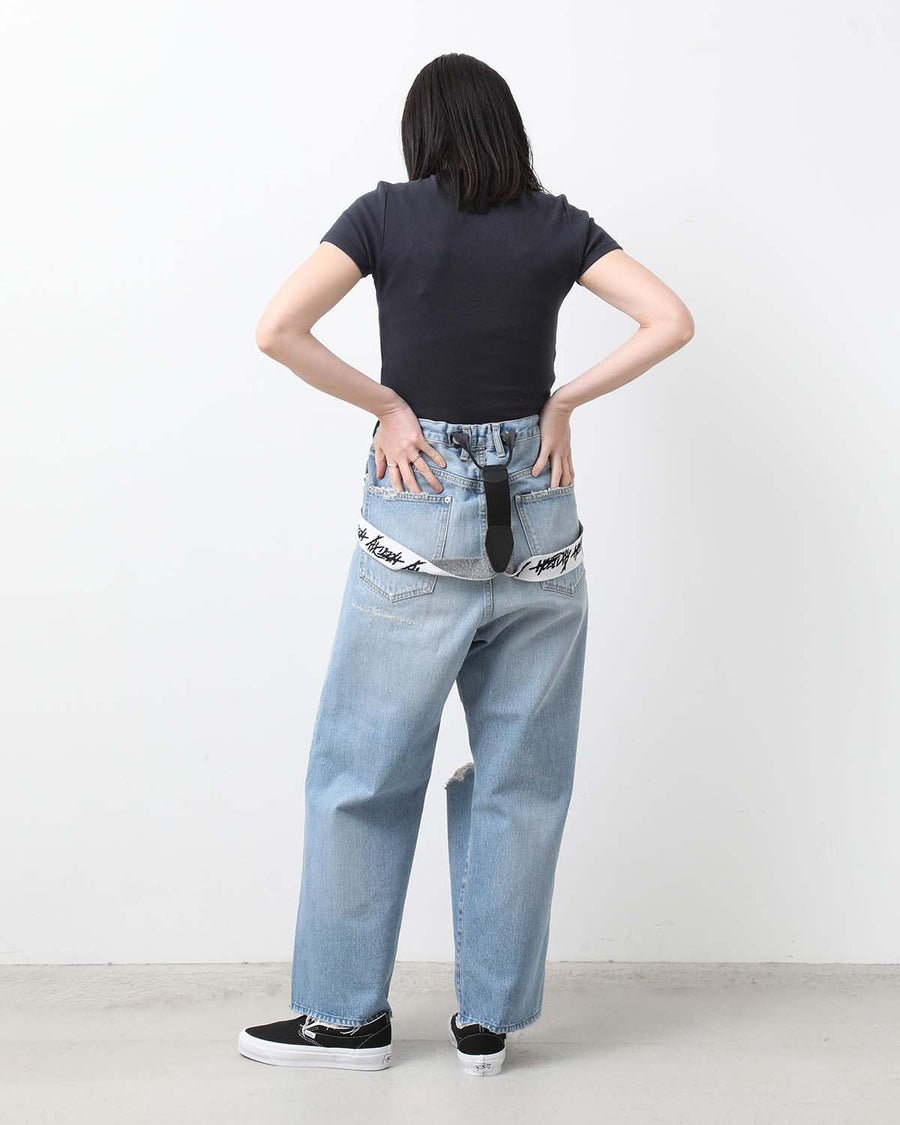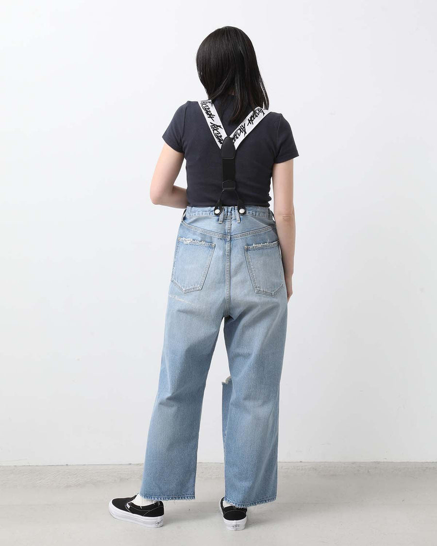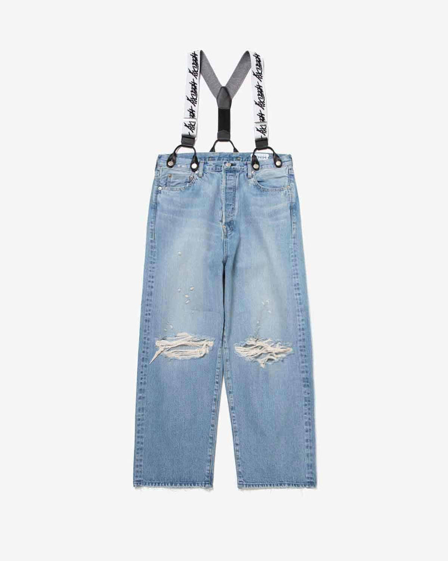 HOLIDAY DAMAGE DENIM SUSPENDER PANTS(LIGHT INDIGO)