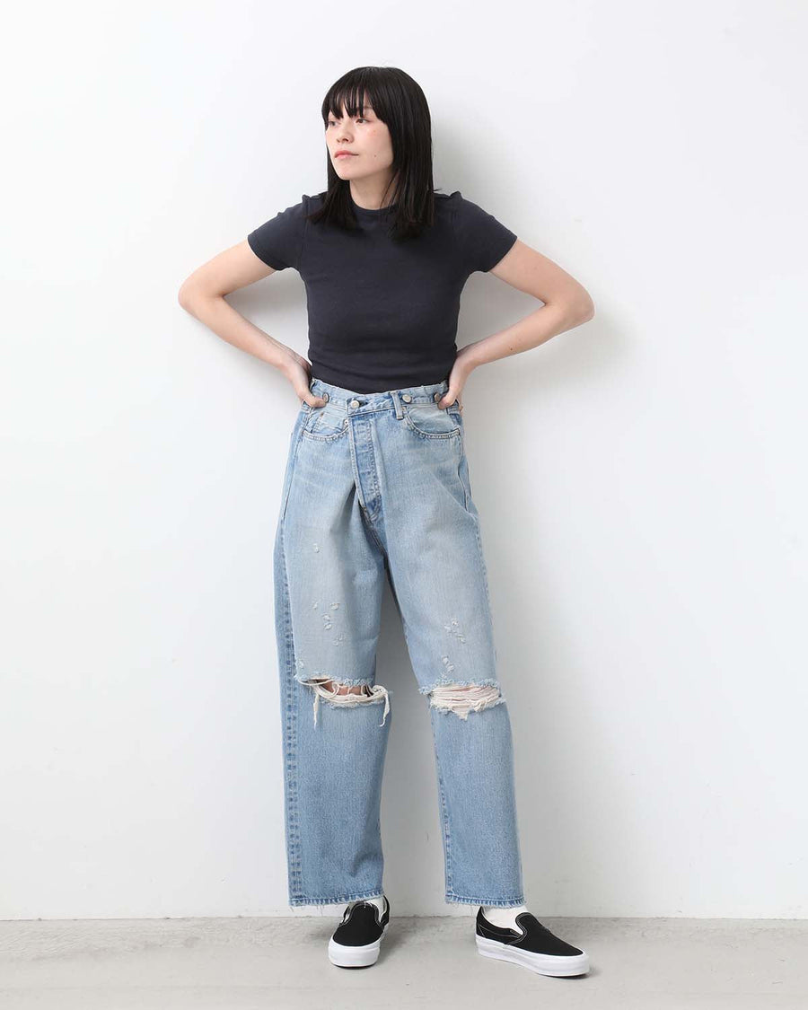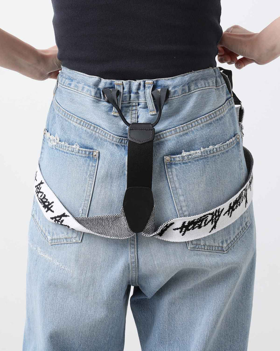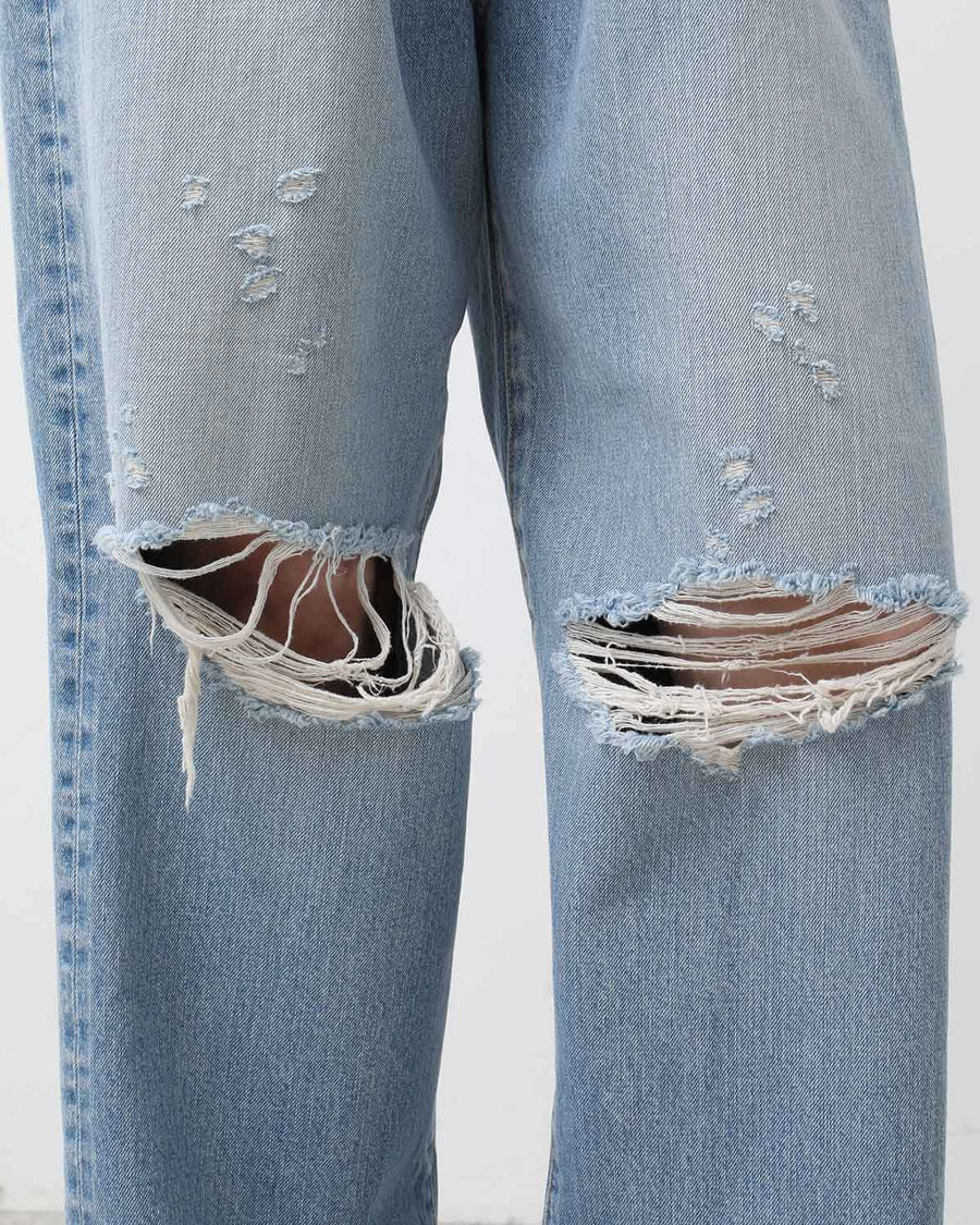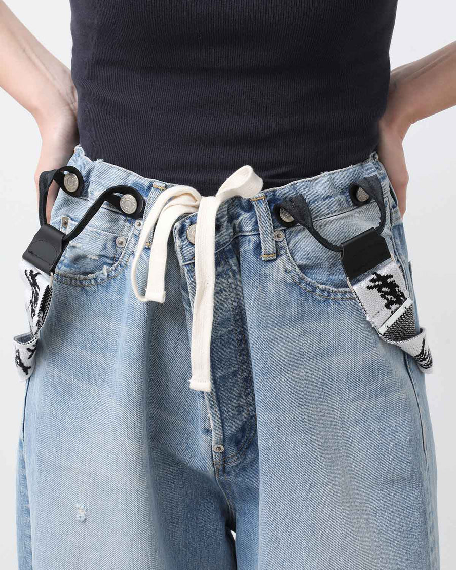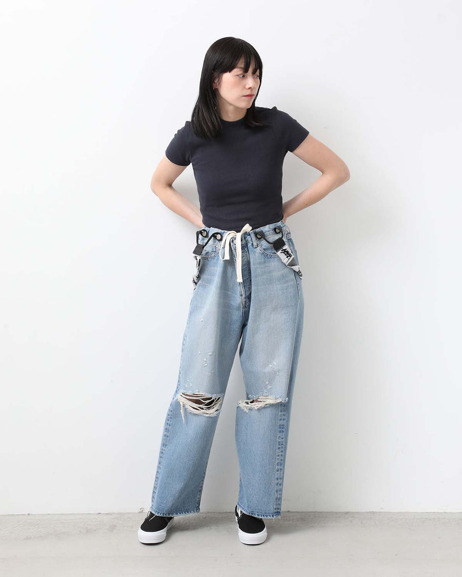 HOLIDAY DAMAGE DENIM SUSPENDER PANTS(LIGHT INDIGO)