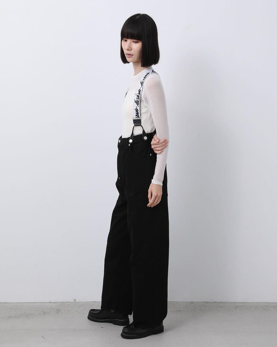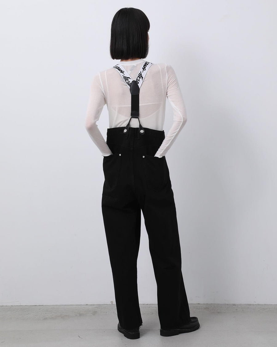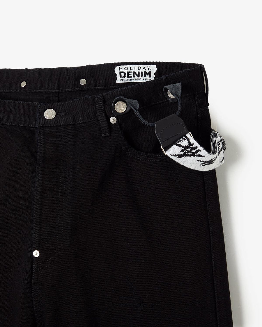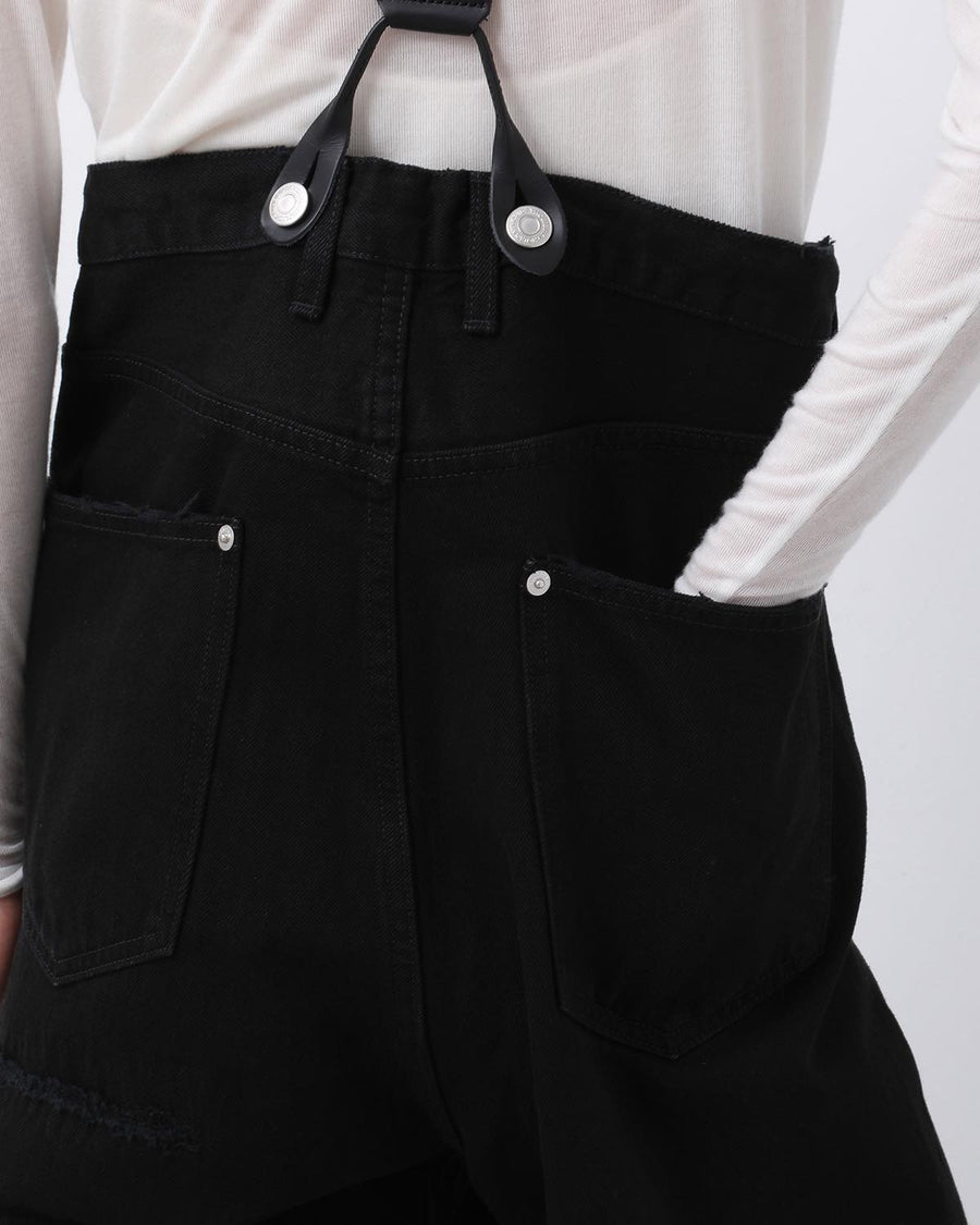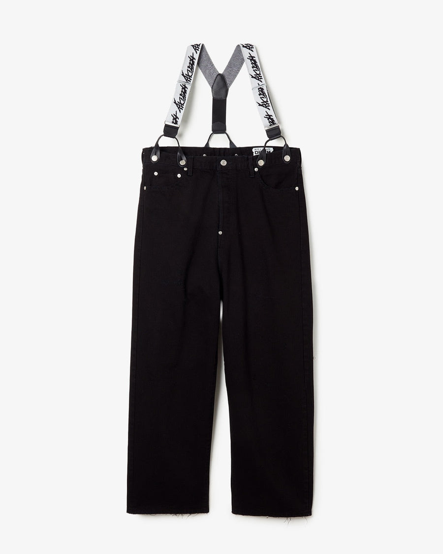 HOLIDAY DAMAGE DENIM SUSPENDER PANTS(BLACK)