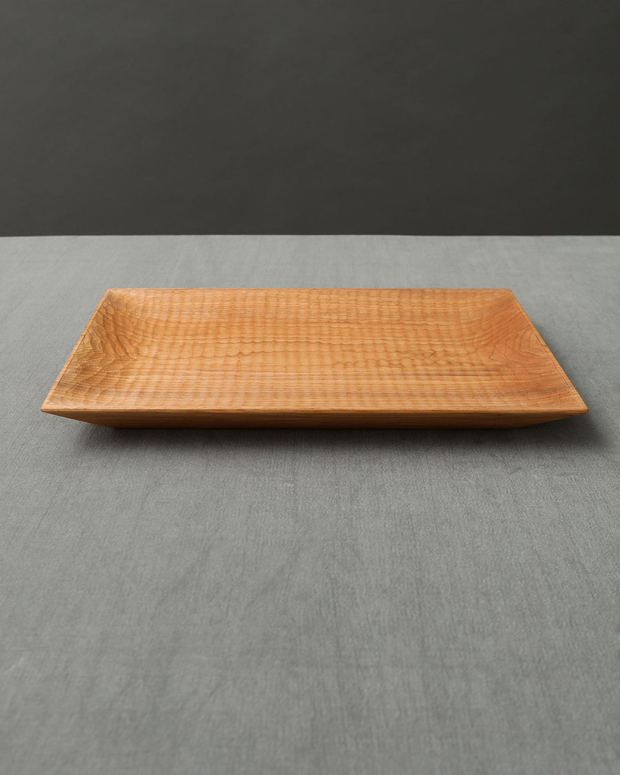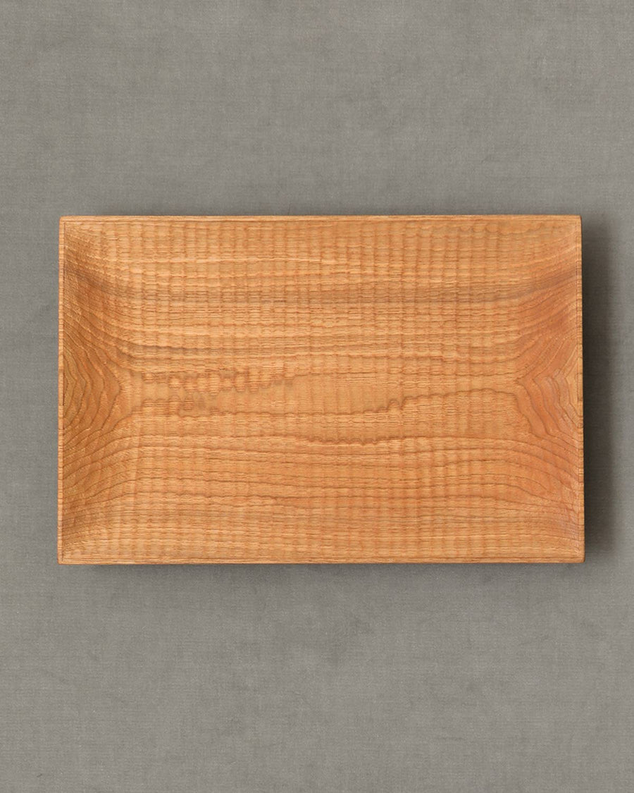 Minimal rectangular plate by Koji Hori, hand carved from walnut wood. Inspired by the concept of natural simplicity, Hori's work exudes the gentle warmth of wood. Crafted with a prepolymer finish for added strength while maintaining its natural texture, this plate is coated with perilla oil, making it easy to care for with just cold or lukewarm water—no soap needed.