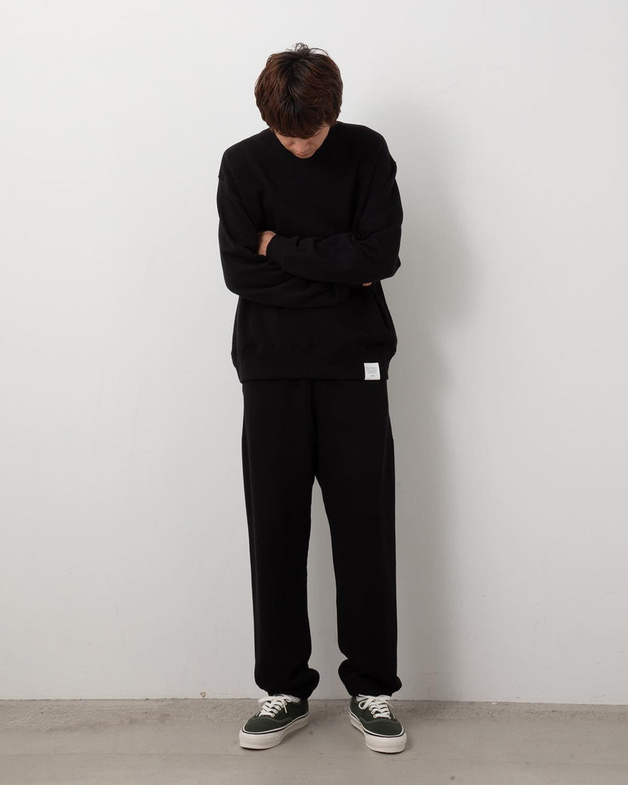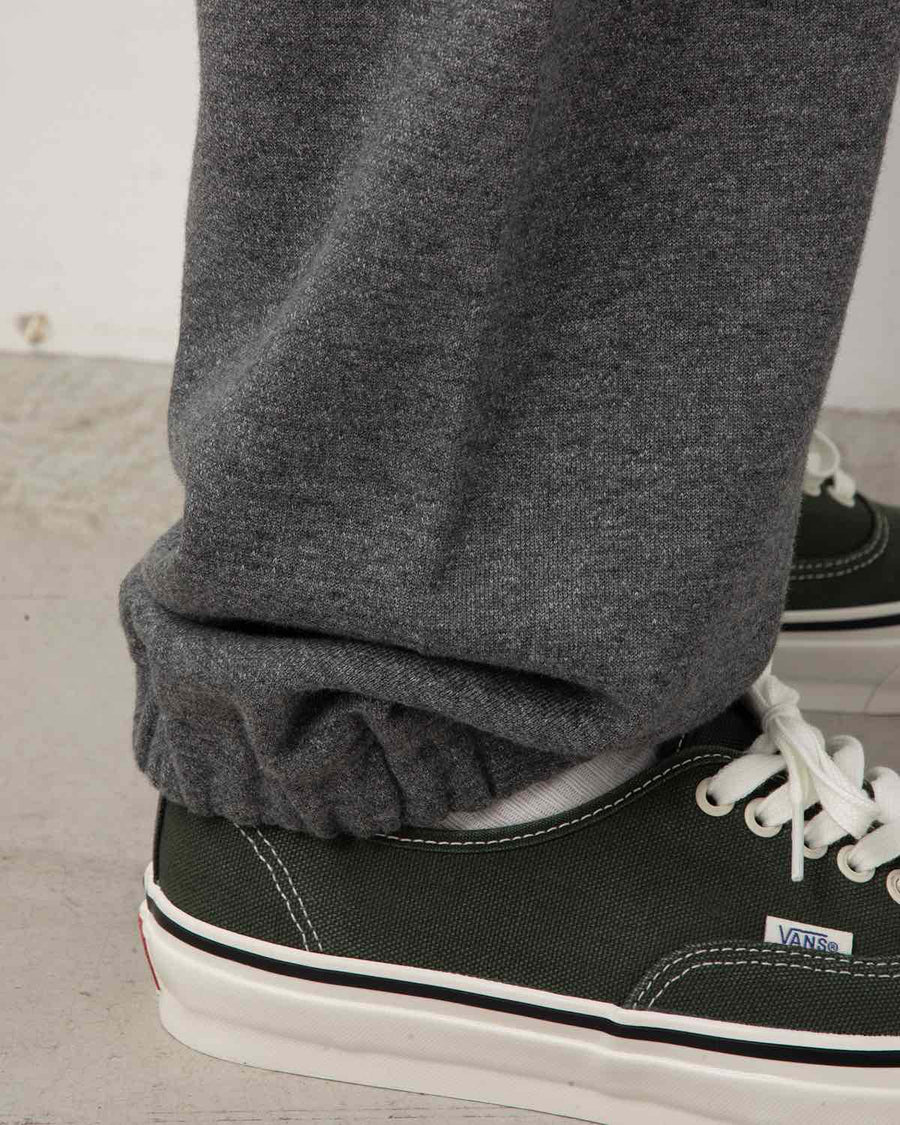 Sweatpants made from soft fleece knit on a vintage Japanese Azuma knitting machine, offering a plush, voluminous feel.