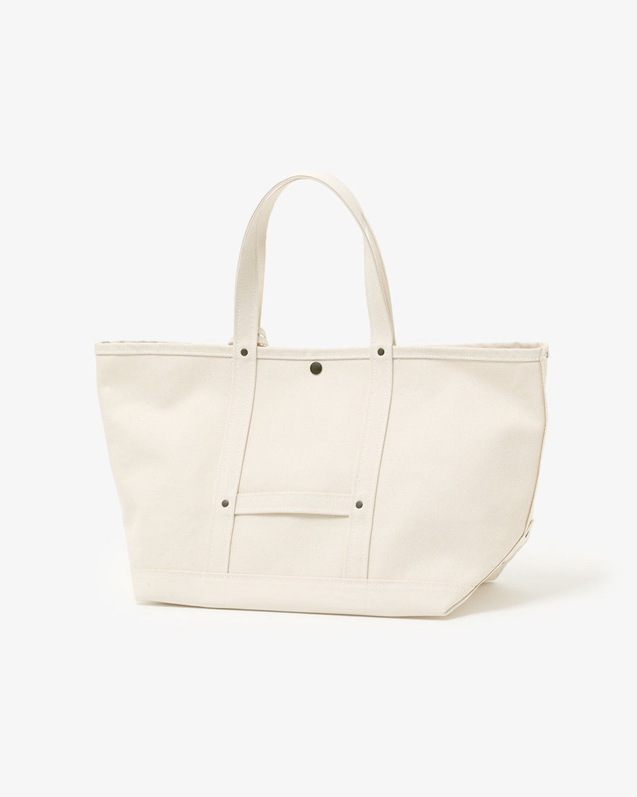 Inspired by 1950s tool bags, the "TOTE BAG (LARGE)" combines minimal design with practical functionality.
