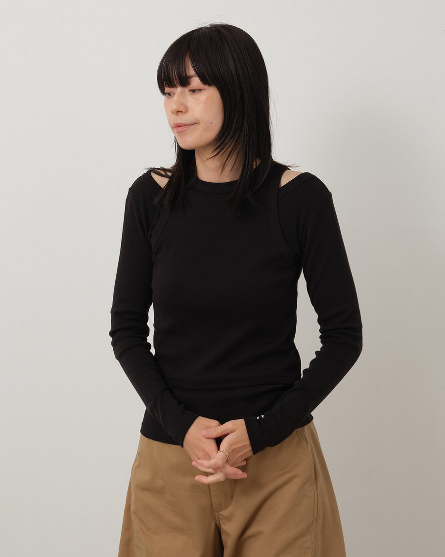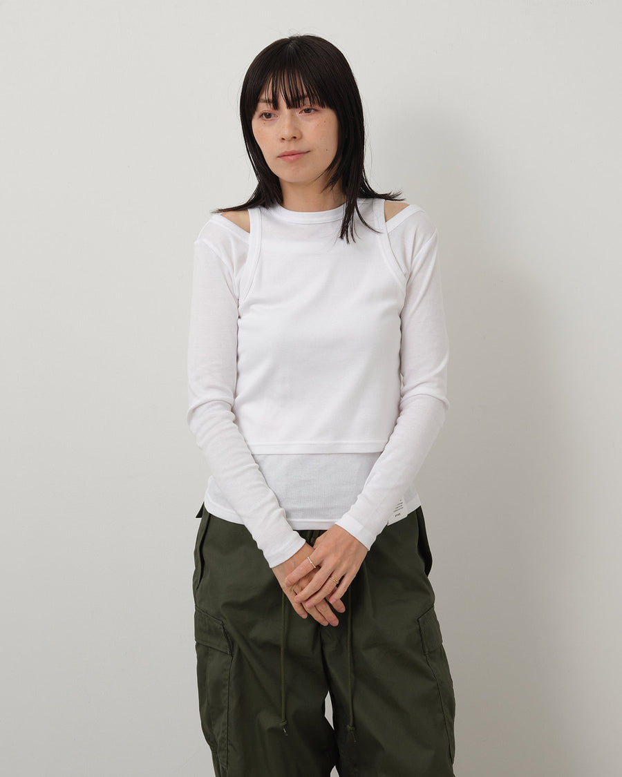 Long sleeve T-shirt made from Ono-style ribbed fabric developed by Ono Meriyasu, known for its durability, stretch, and soft feel.
