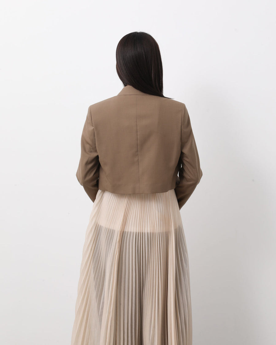 The WOOL DOUBLE-BREASTED CROPPED BLAZER is made from Super120 tropical wool, featuring a crisp, lightweight feel. Its clean look and cropped length reflect 〈HYKE〉’s minimalist design.