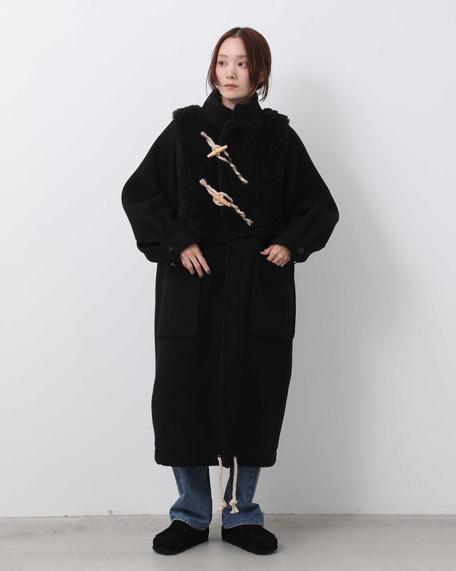 HYKE DOUBLE FACE FAUX SHEARLING DUFFLE COAT