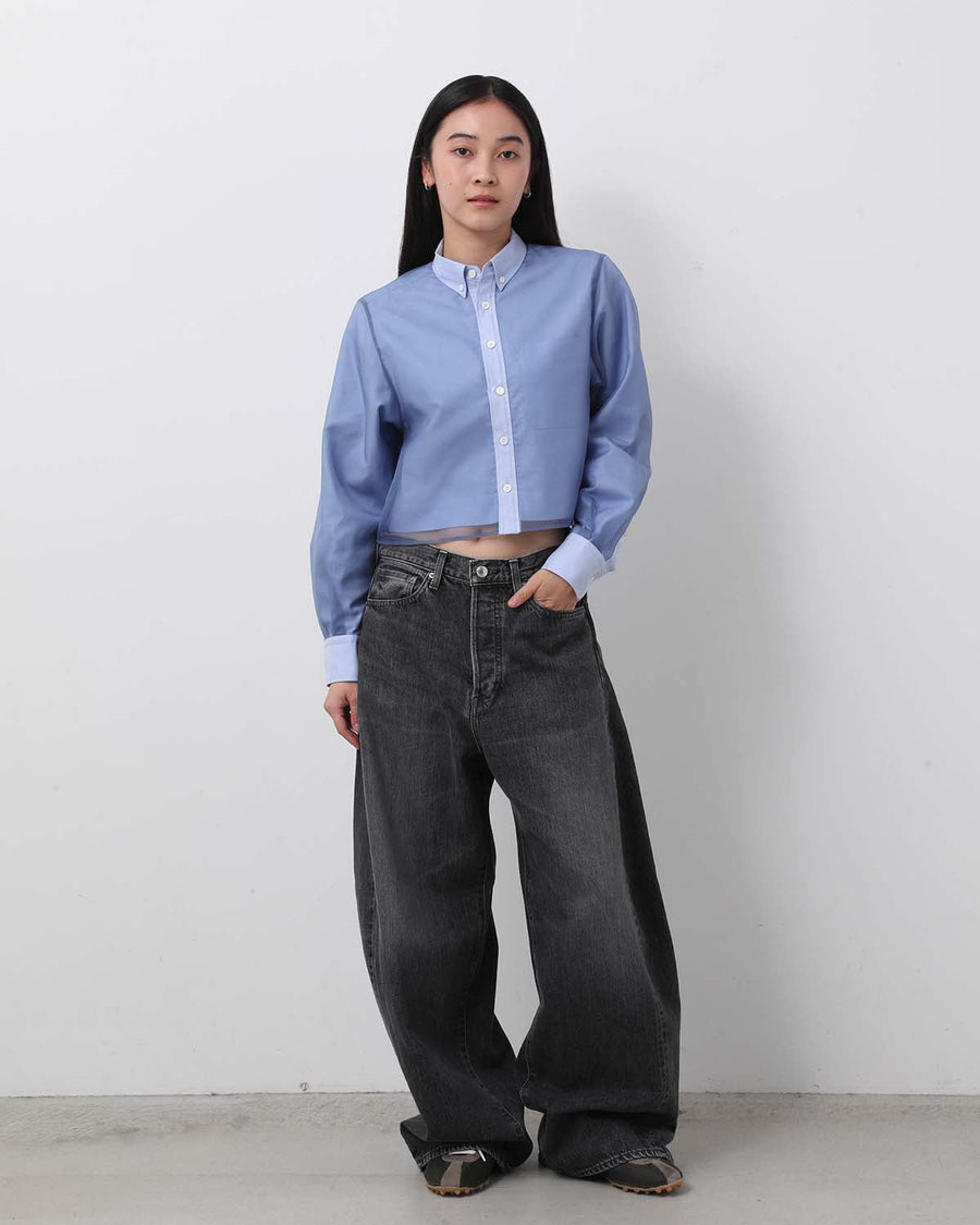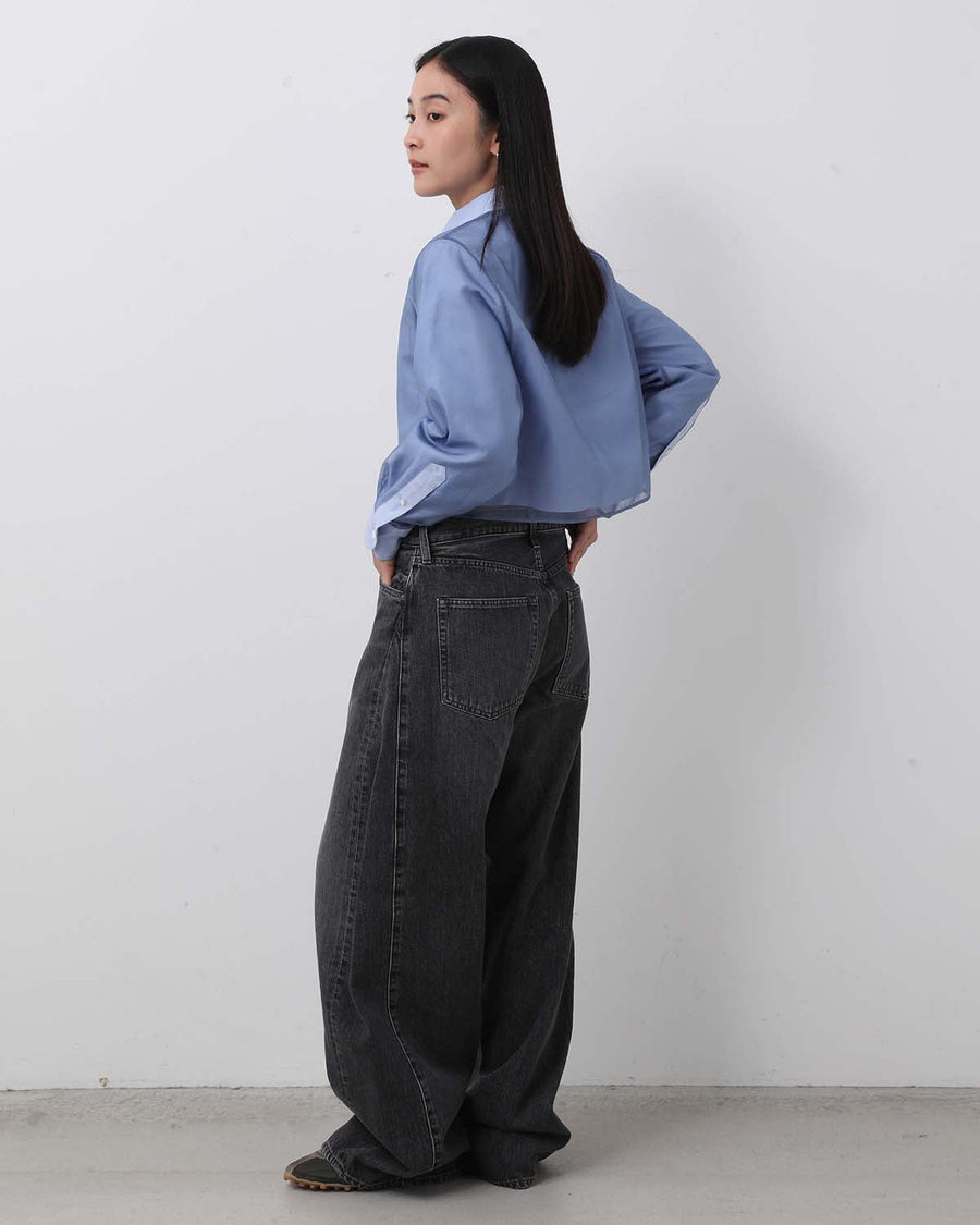The DENIM PANTS by HYKE are made from 12oz denim with a USED WASH finish, featuring textured fabric woven on vintage looms for a classic, vintage feel.