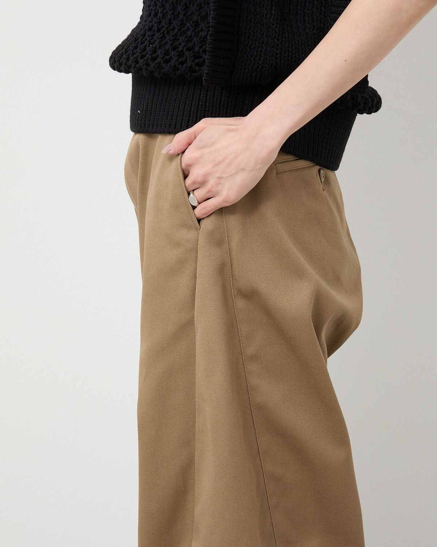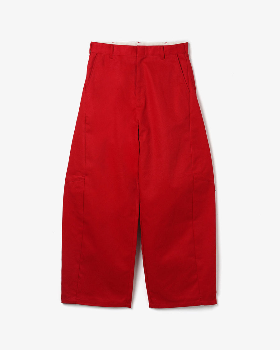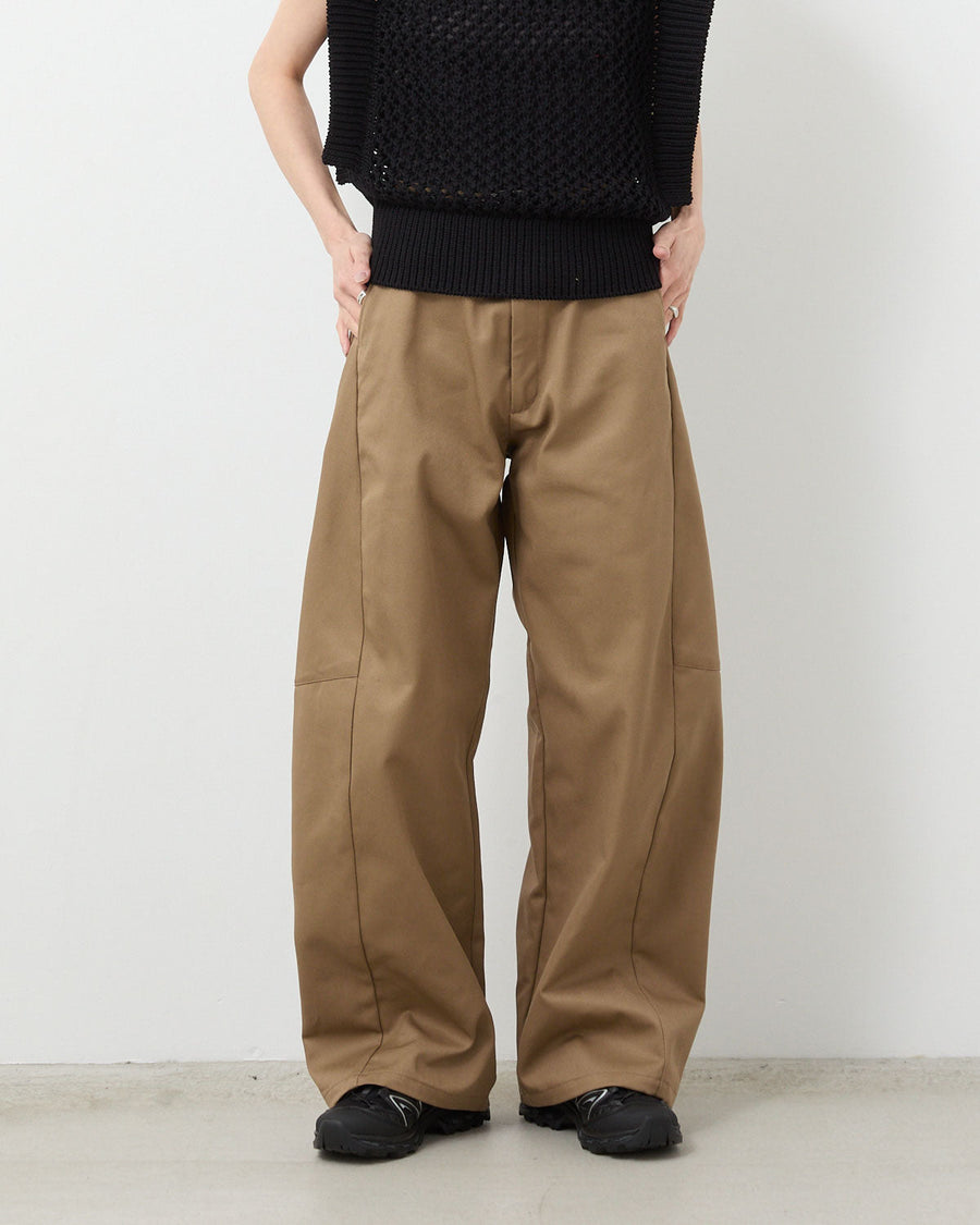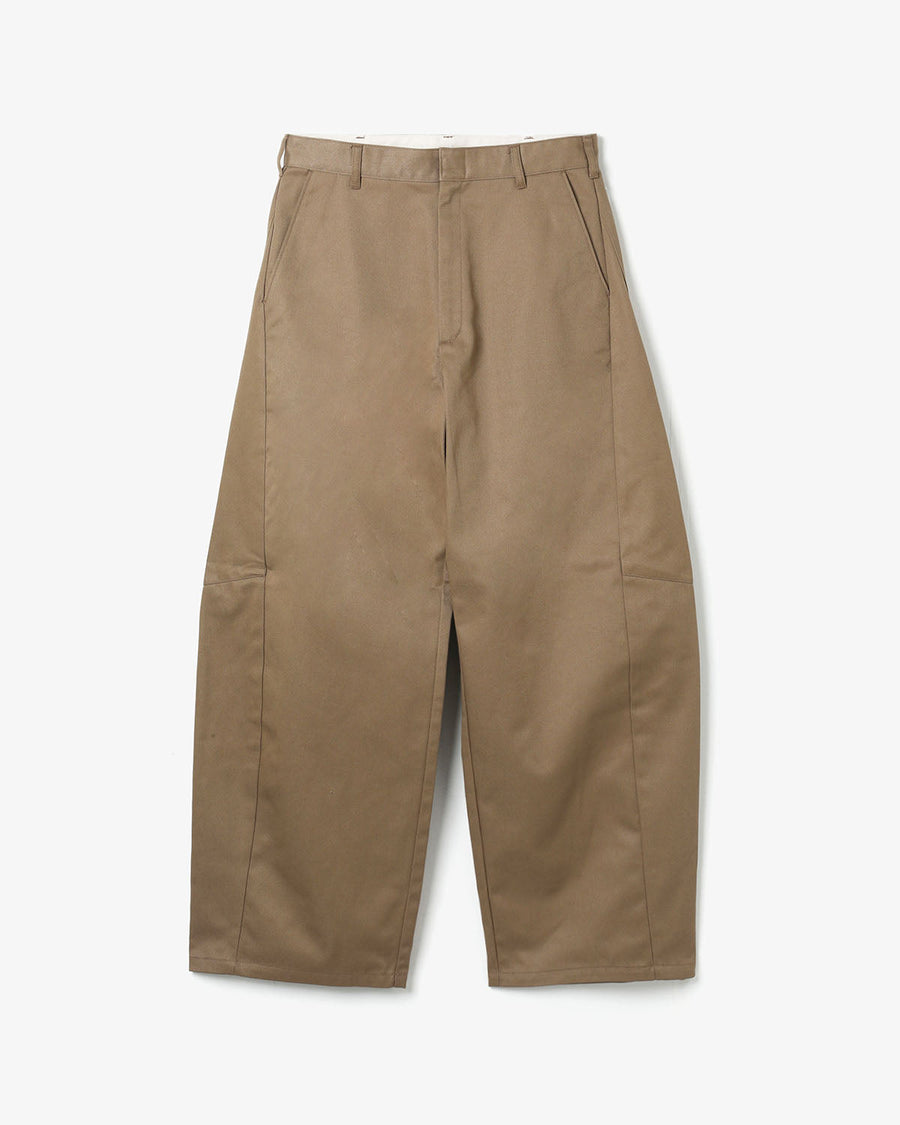 Barrel silhouette work pants made from durable polyester–cotton katsuragi twill.