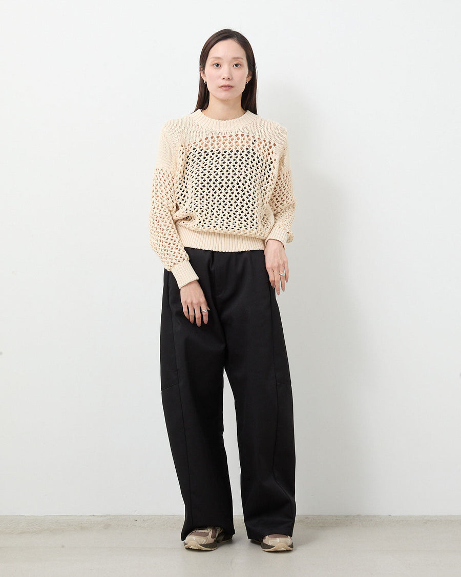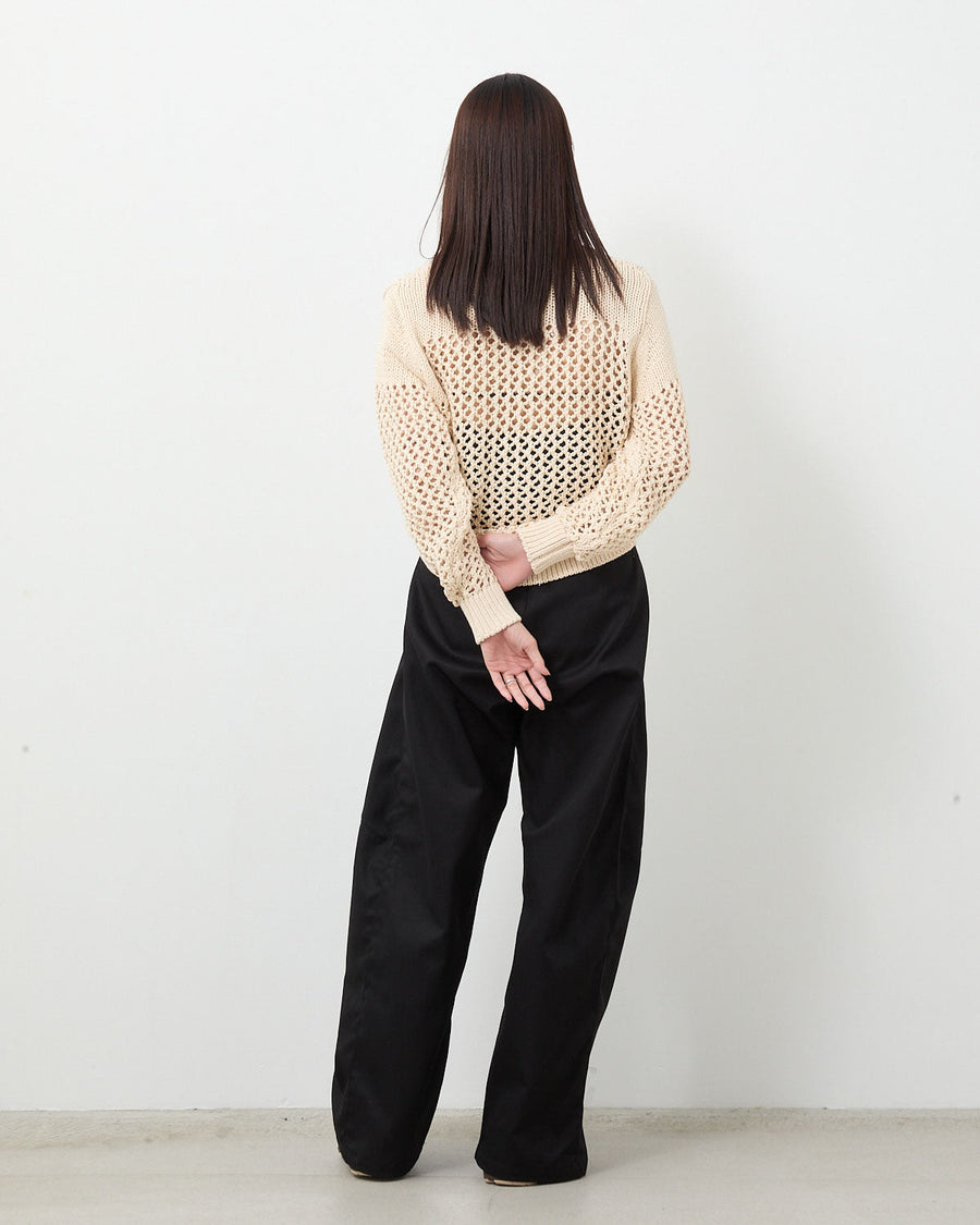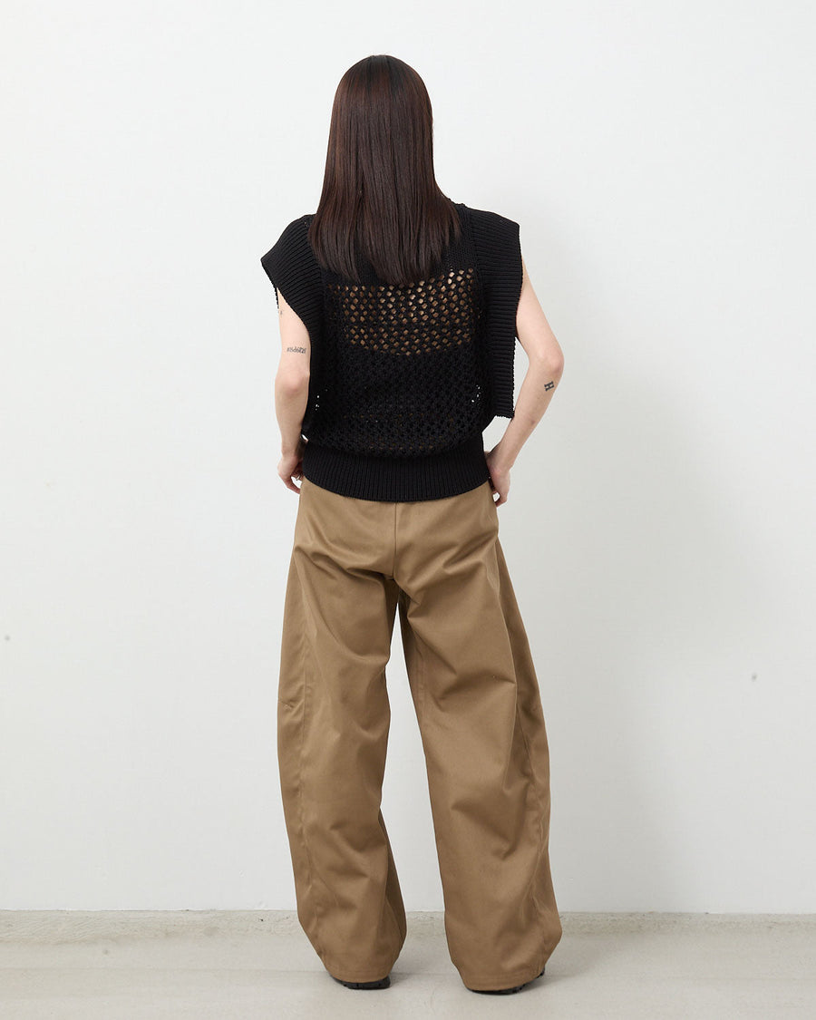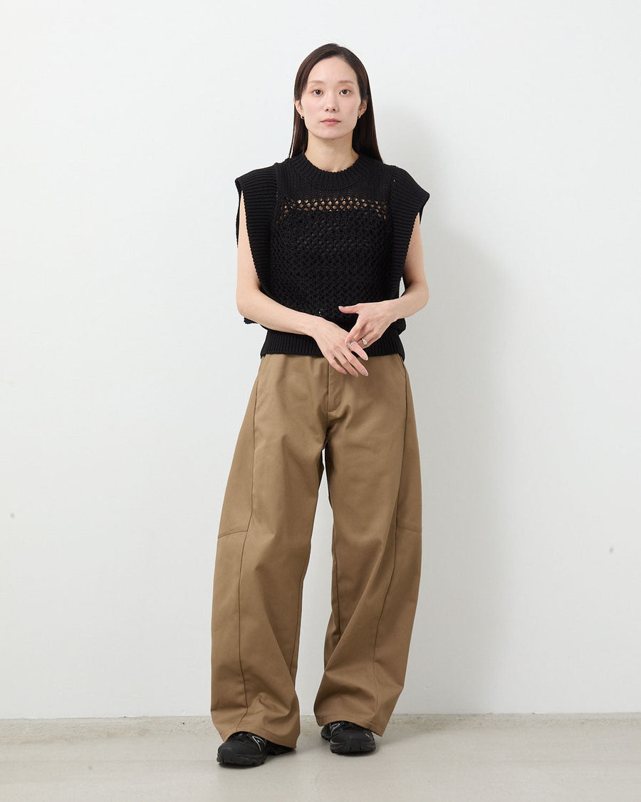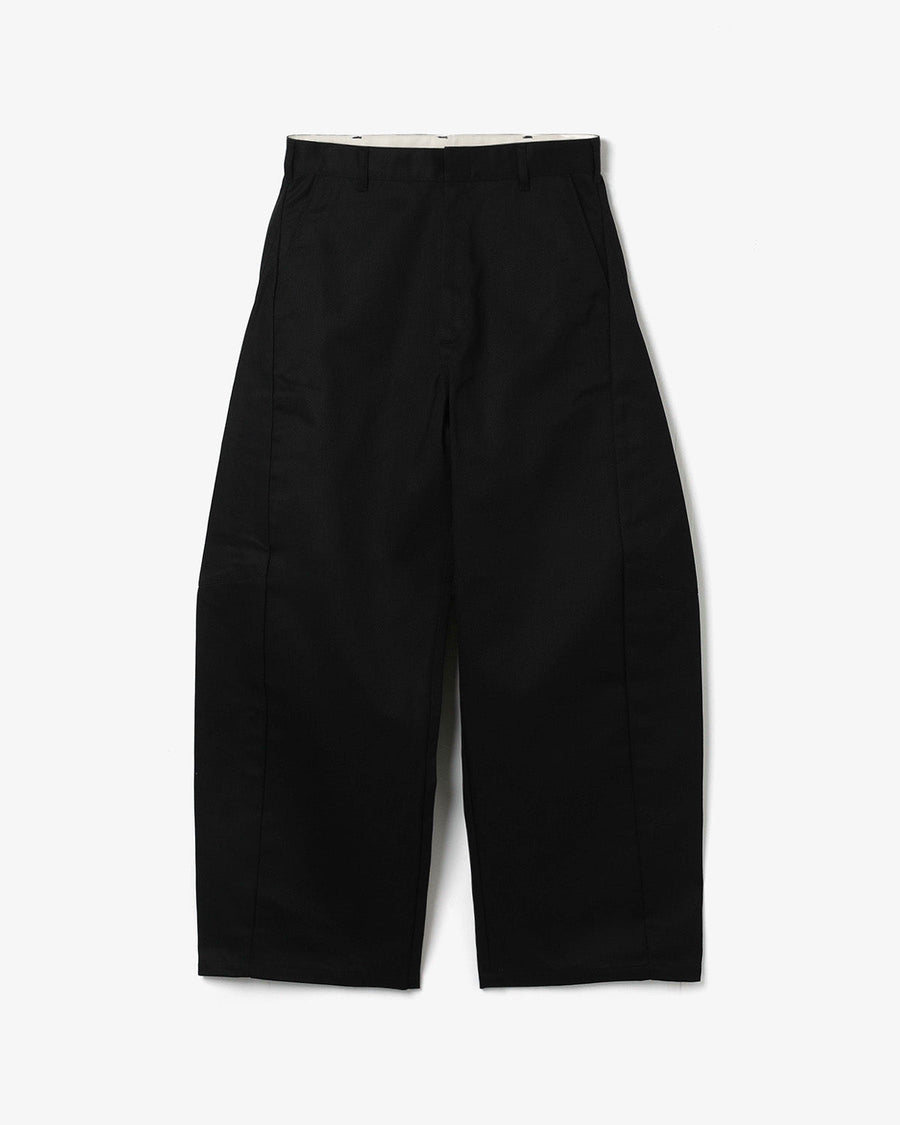 Barrel silhouette work pants made from durable polyester–cotton katsuragi twill.