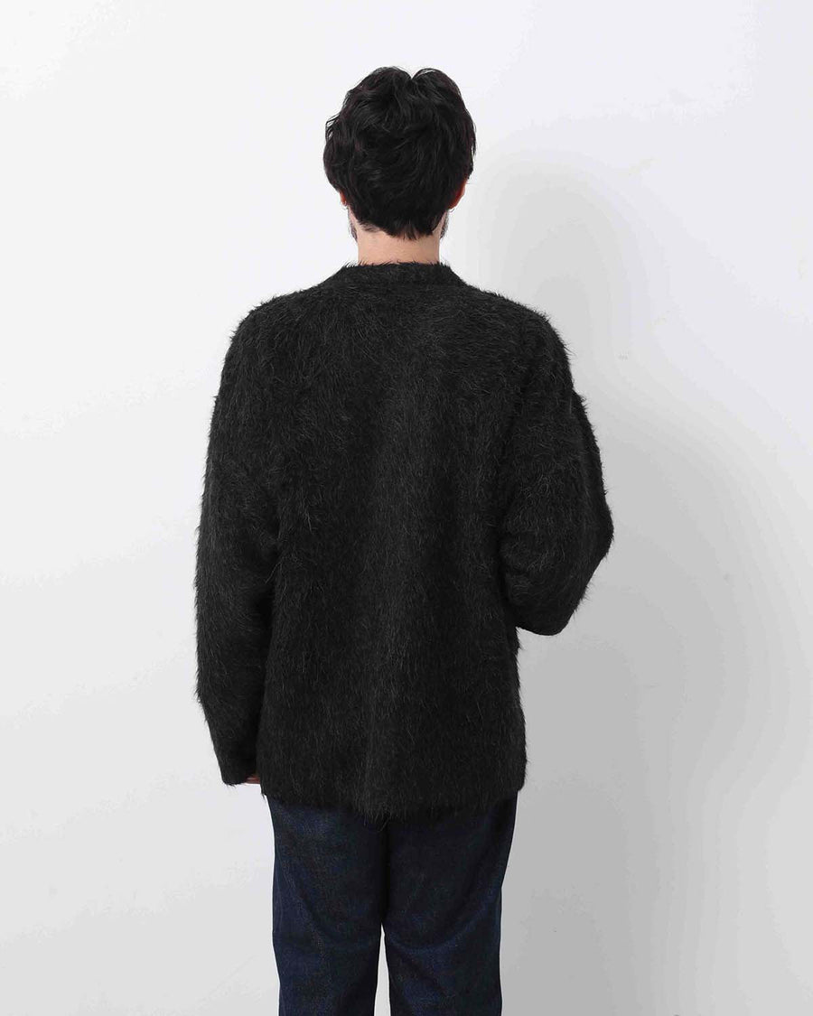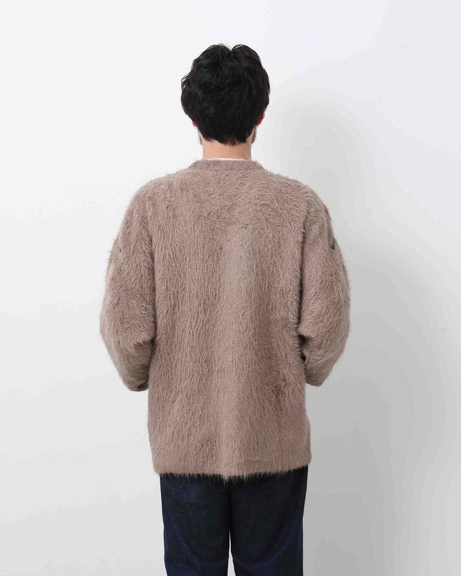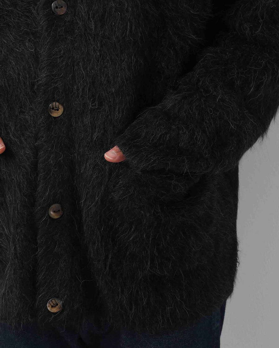 しなやかでモヘアのように毛足の長い、アルパカ品種の中でも希少なSURI (スリ)種の羊毛を使用したカーディガンです。