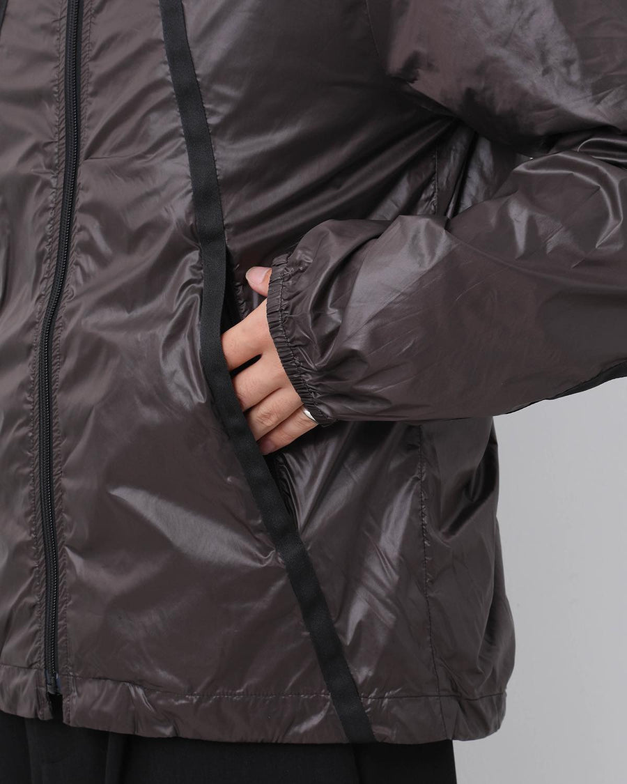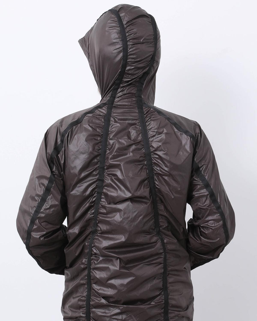 The SINH SHELL JACKET features lightweight, high-performance shell fabric, sculpted cuts, functional details, and an adjustable hood and hem for a minimal yet flexible fit.