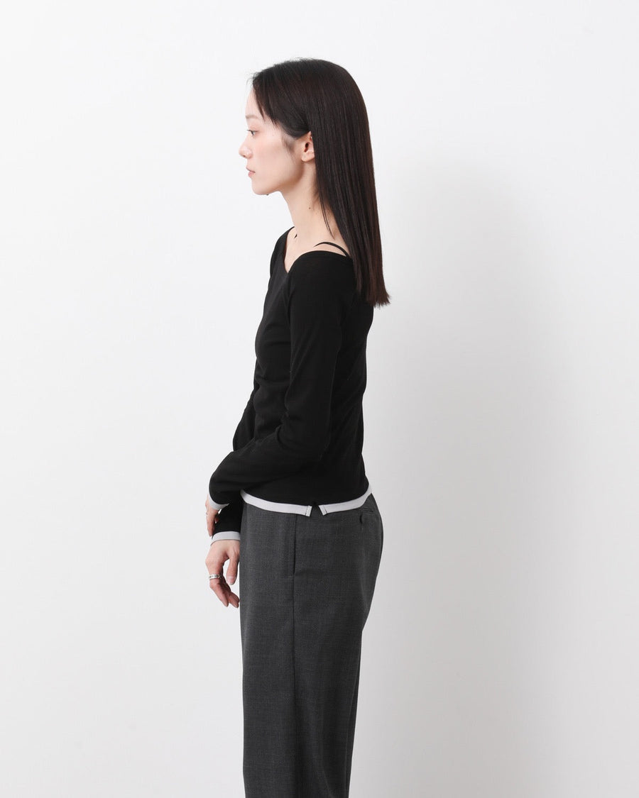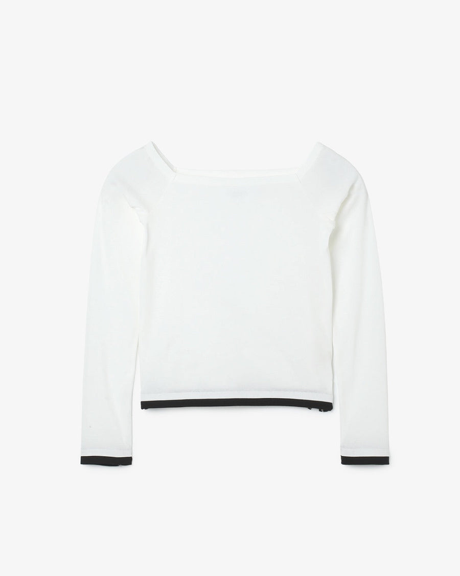 An off-shoulder pullover in tightly twisted cotton rib with a cool, smooth feel.