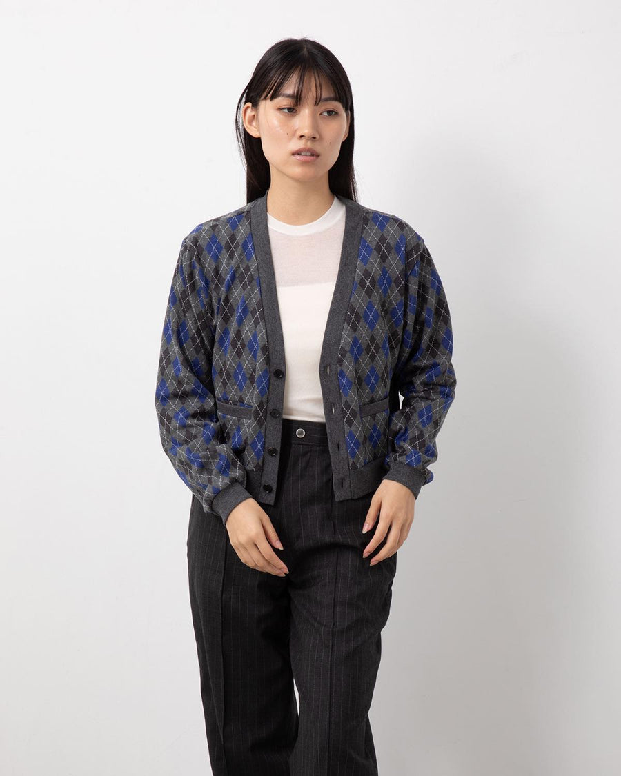 JANE SMITH COTTON JACQUARD ARGYLE V-NECK CARDIGAN
