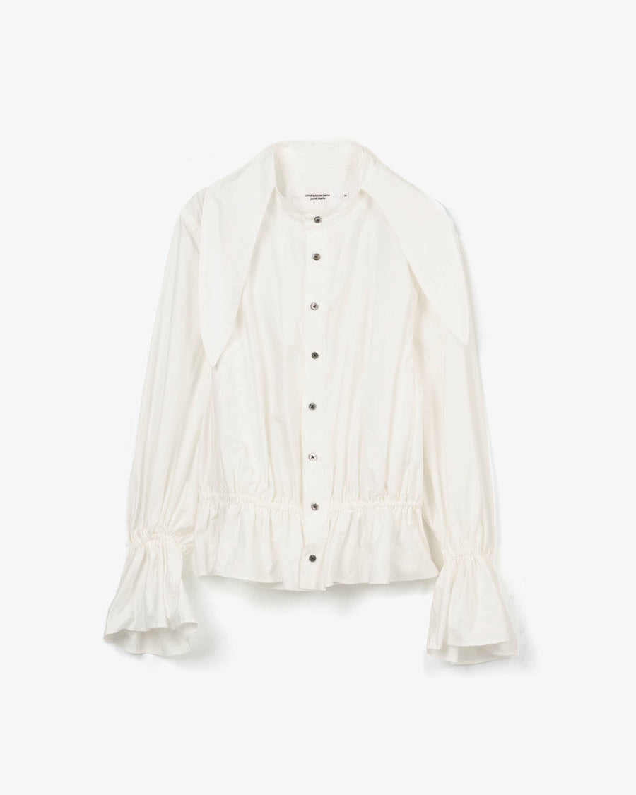 JANE SMITH WASHED COTTON BROAD BOW TIE GATHER SHIRT