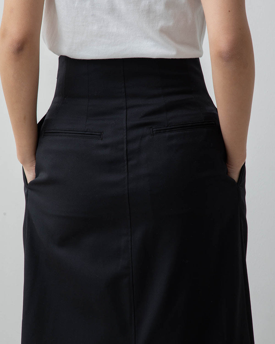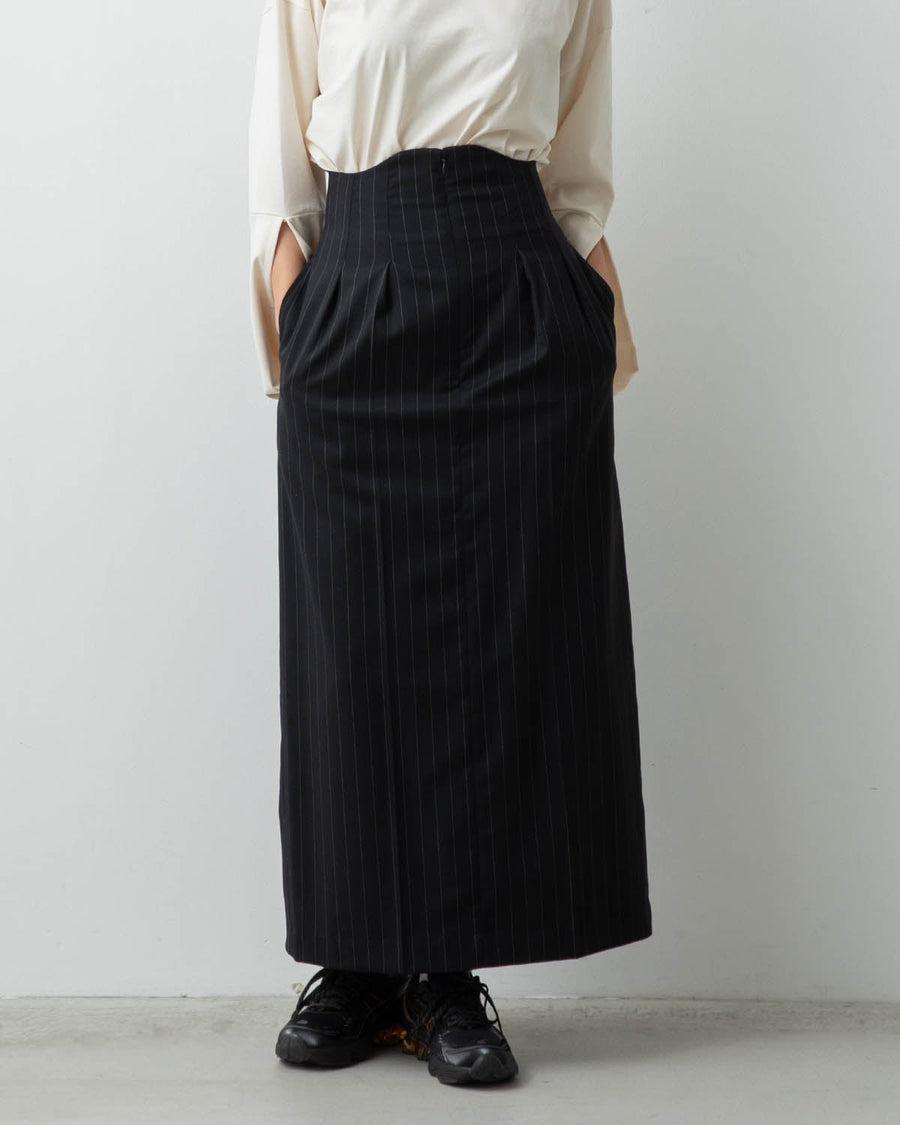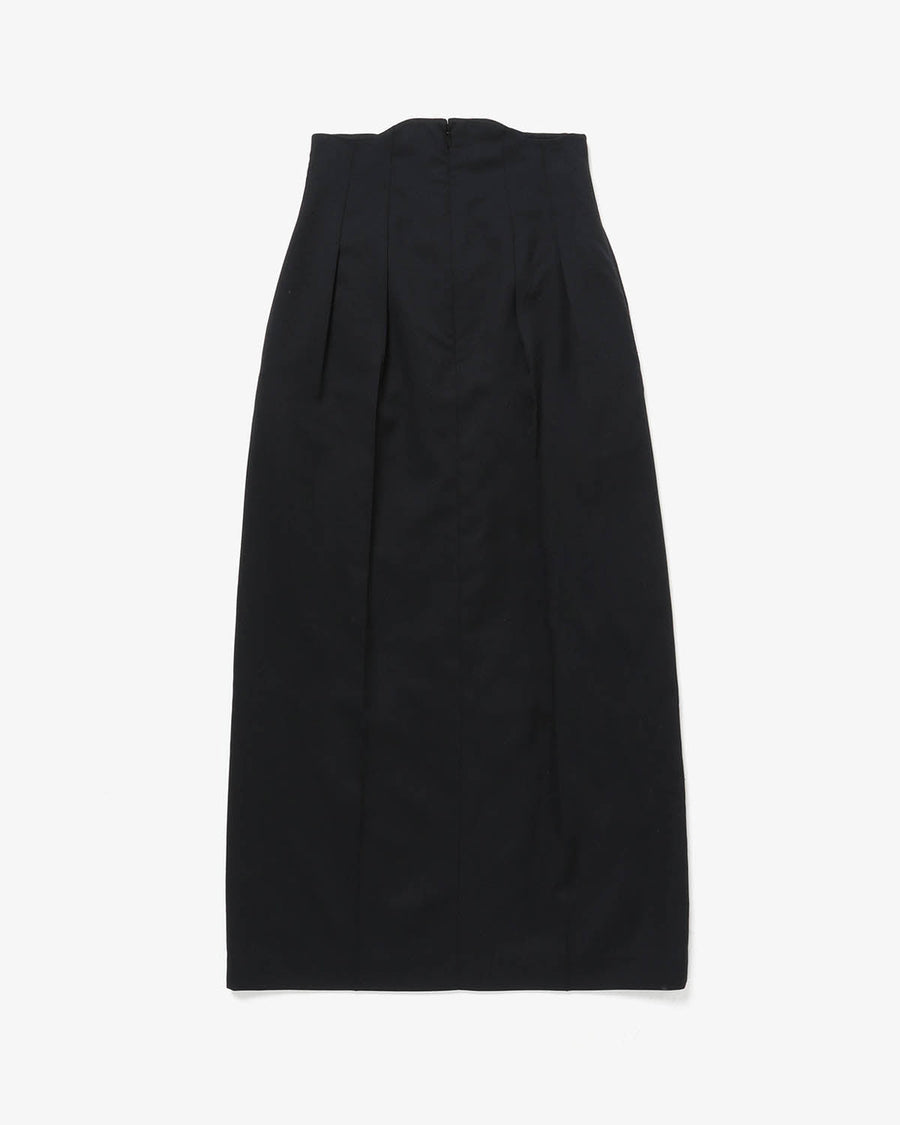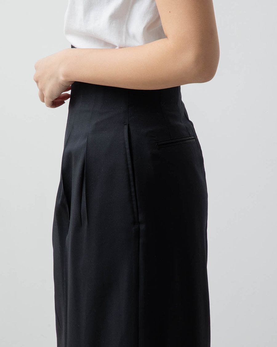 This high-waisted skirt uses Bishu wool, with a corset-inspired waist and double tucks for a relaxed fit around the hips.