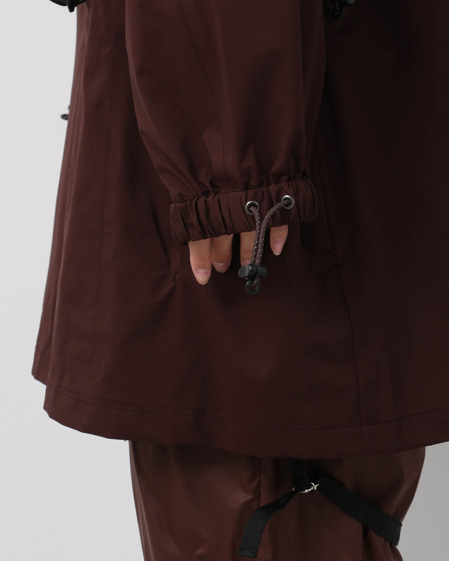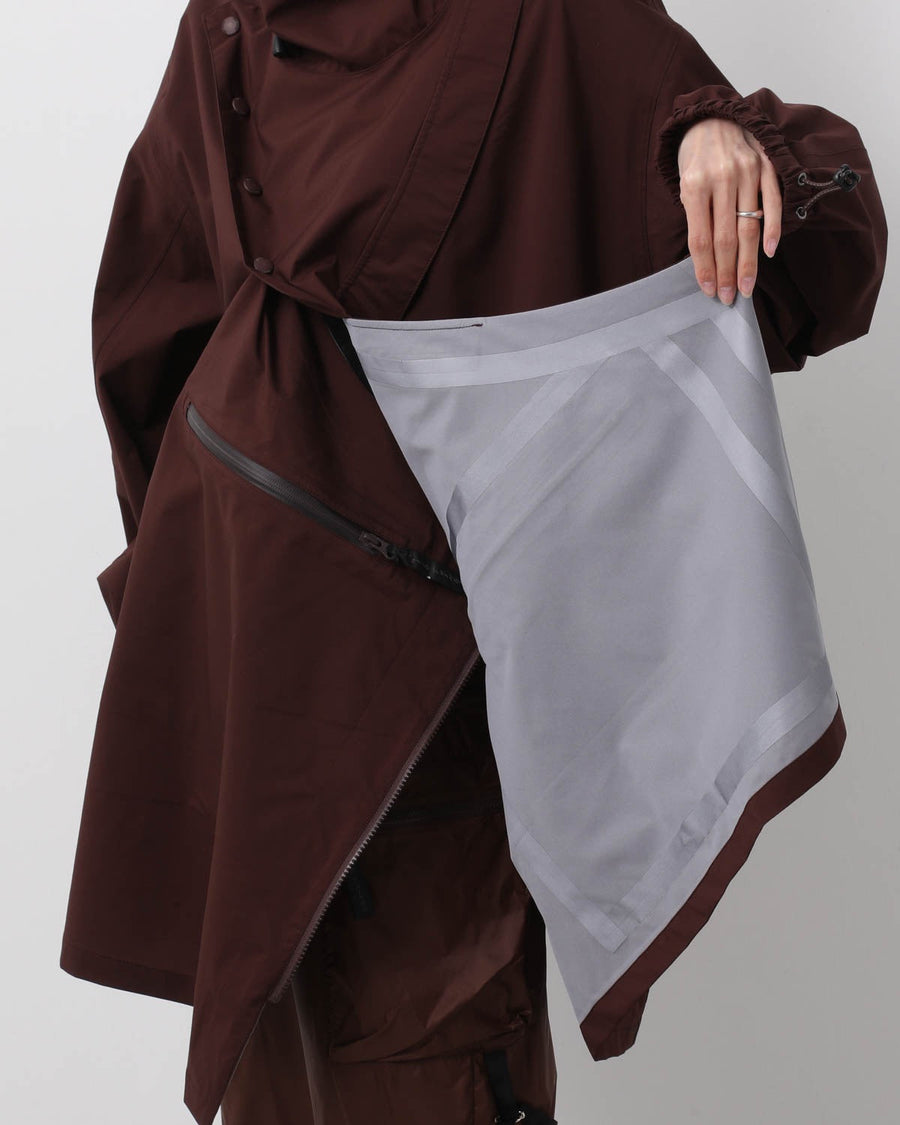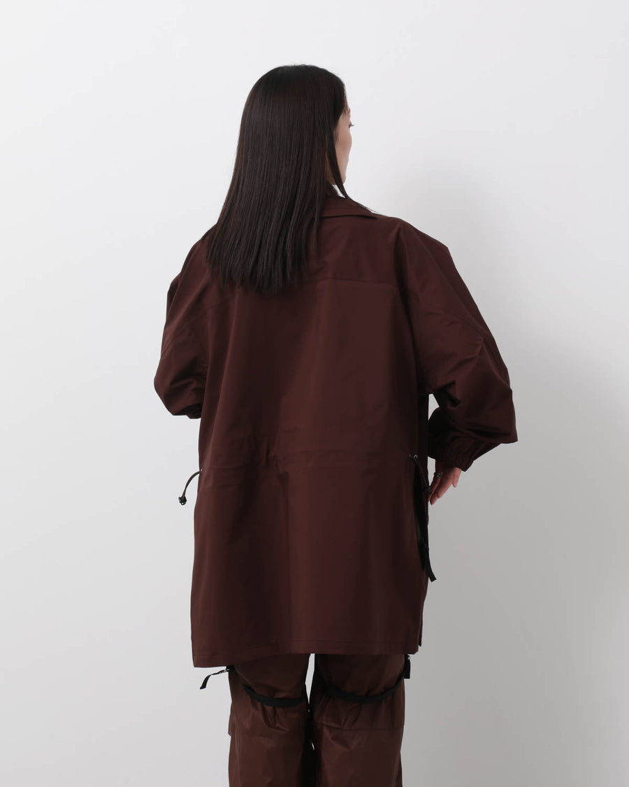 The “WT×JM/CT” by Jun Mikami × WILD THINGS is a nylon jacket with anorak-inspired details, full-open front snaps and side zips, adjustable neck, and multiple pockets.