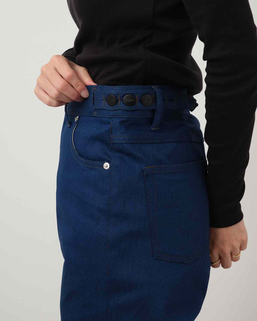 ウエストサイドにボタンアジャスターを配し、絞って着用することで、ストリート感のある表情とエレガンスが融合したスタイリングを楽しめます。
