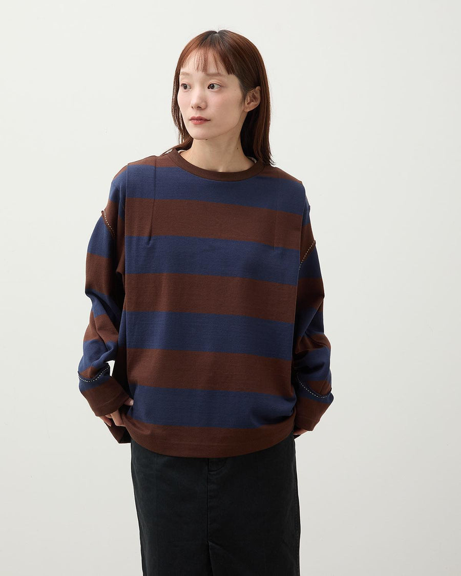 A cotton long-sleeve top in an original stripe pattern, offering a soft feel with subtle structured details signature to jonnlynx.