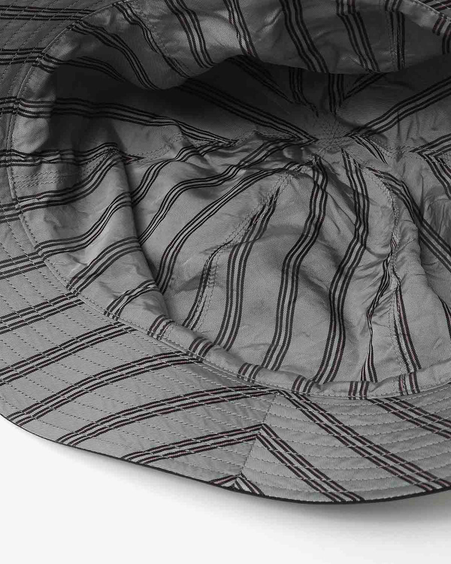 Reversible bucket hat with cotton twill front and cupra satin stripe 6-panel back.Hand-washable and packable for versatile use.