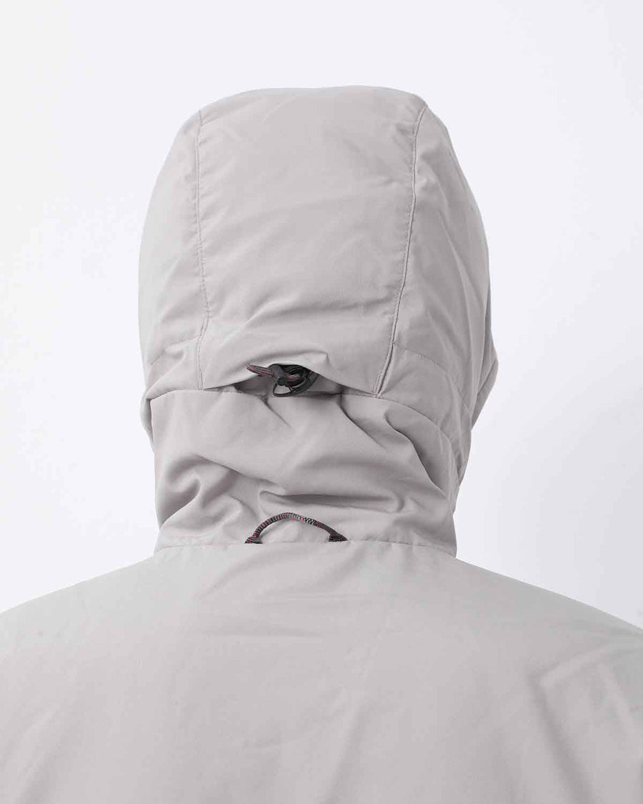 The URD LIGHT STRETCH HOOD JACKET is a high-performance winter trail jacket with recycled polyester, Primaloft® insulation, adjustable hem, stretchy cuffs, and mobility-focused design.